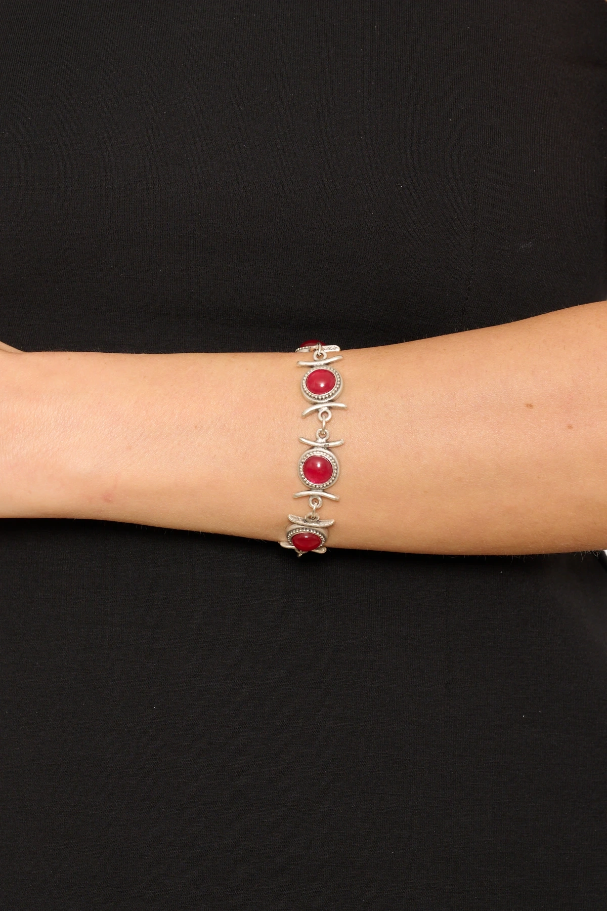 Kiraz Burgundy Stoned Silver Plated Bracelet