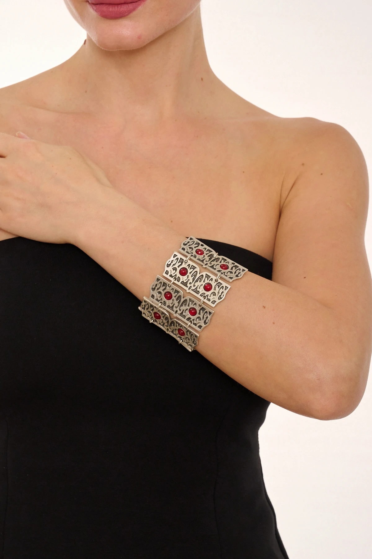 Kiraz Burgundy Stoned Silver Plated Bracelet