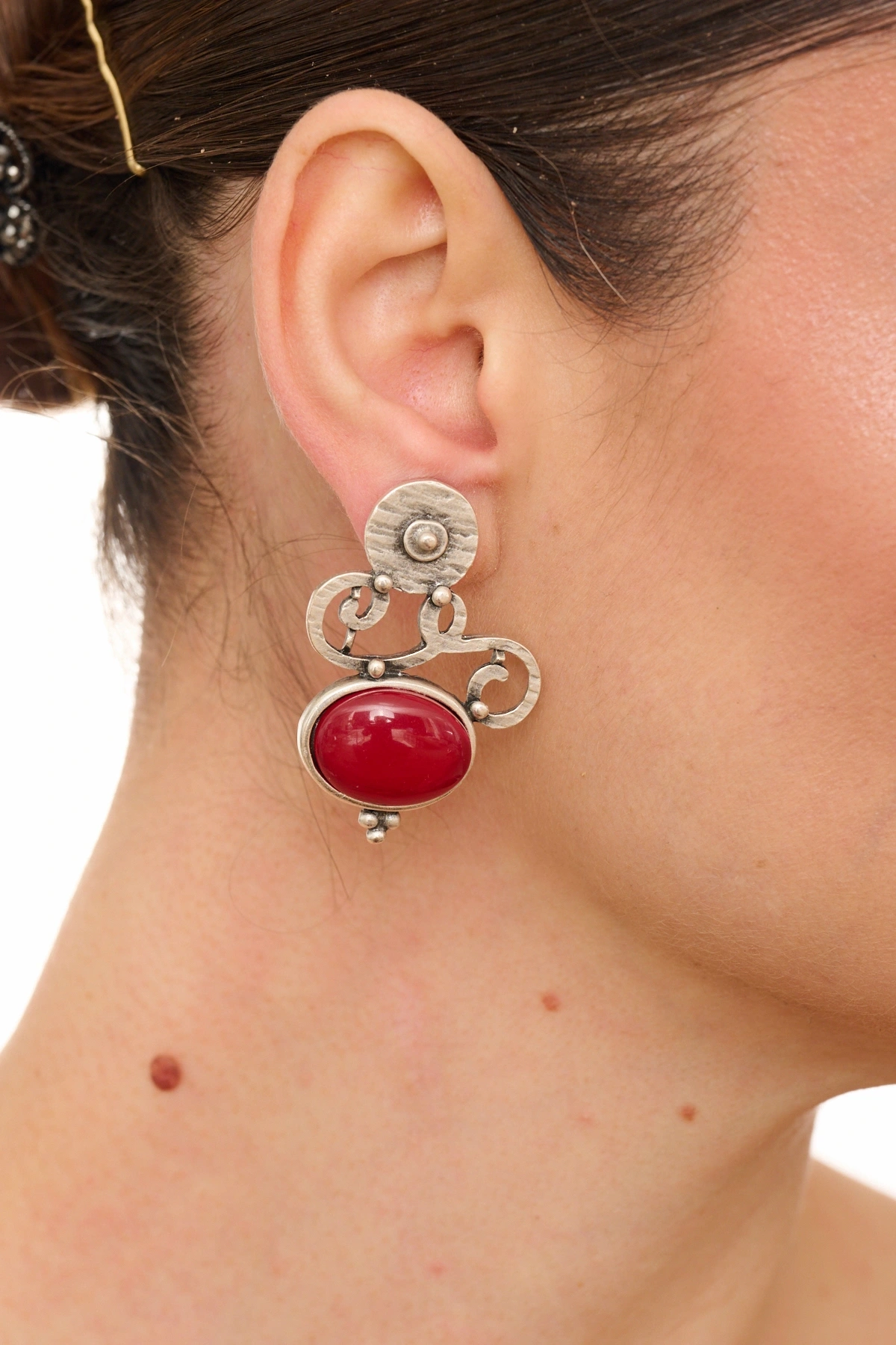 Kiraz Burgundy Stoned Silver Plated Earring