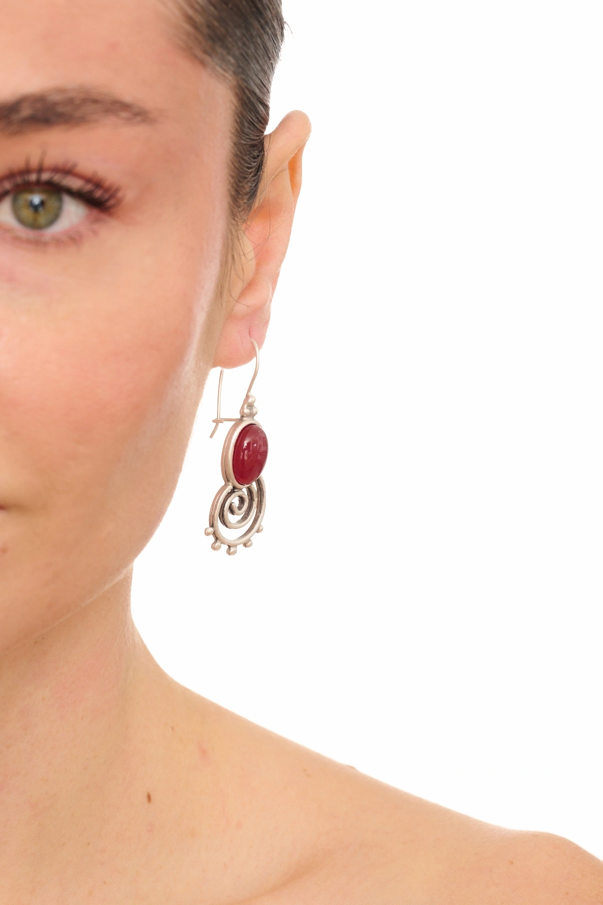 Kiraz Burgundy Stoned Silver Plated Earring