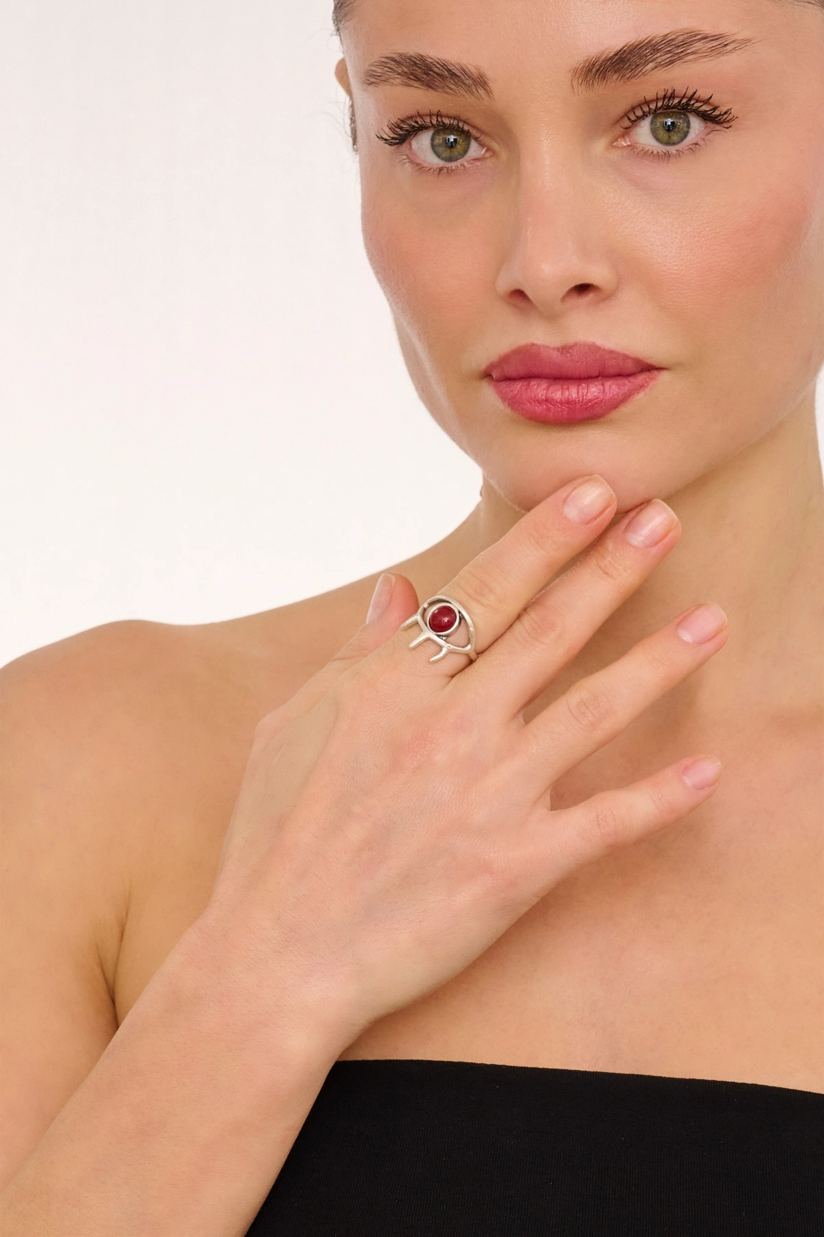 Kiraz Burgundy Stoned Silver Plated Eye Ring