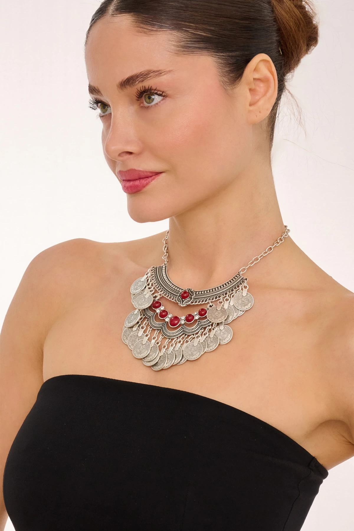 Kiraz Burgundy Stoned Silver Plated Necklace