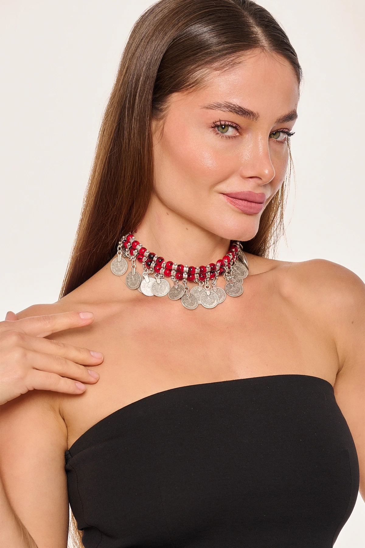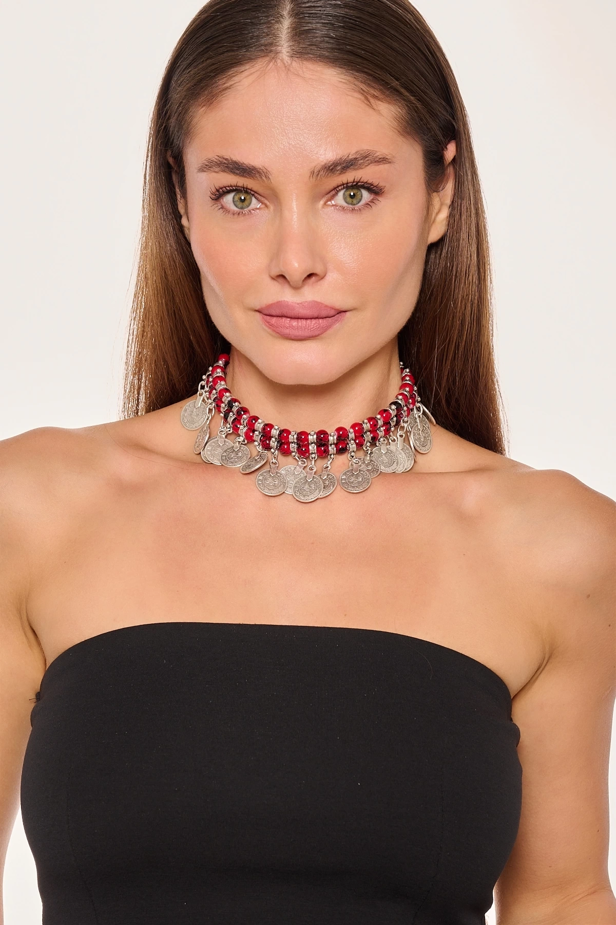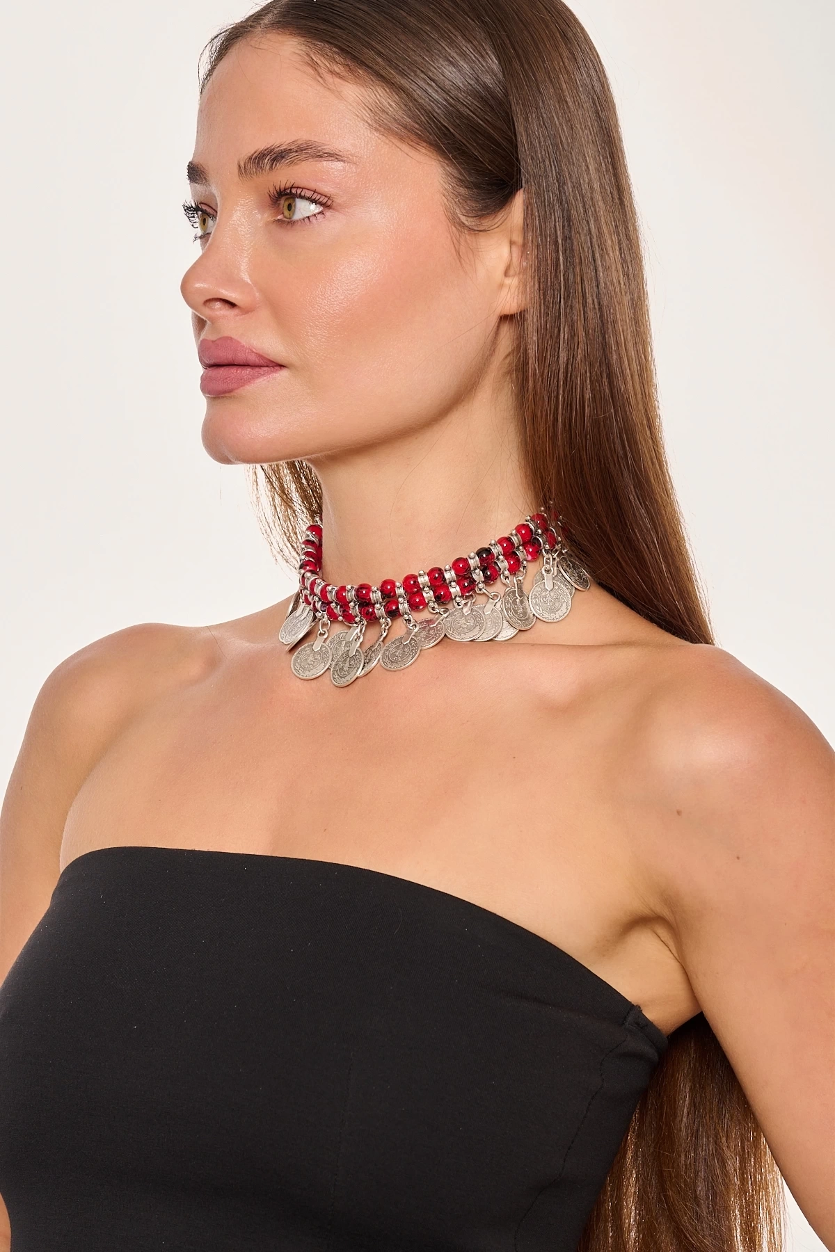 Kiraz Burgundy Beaded Silver Plated Necklace