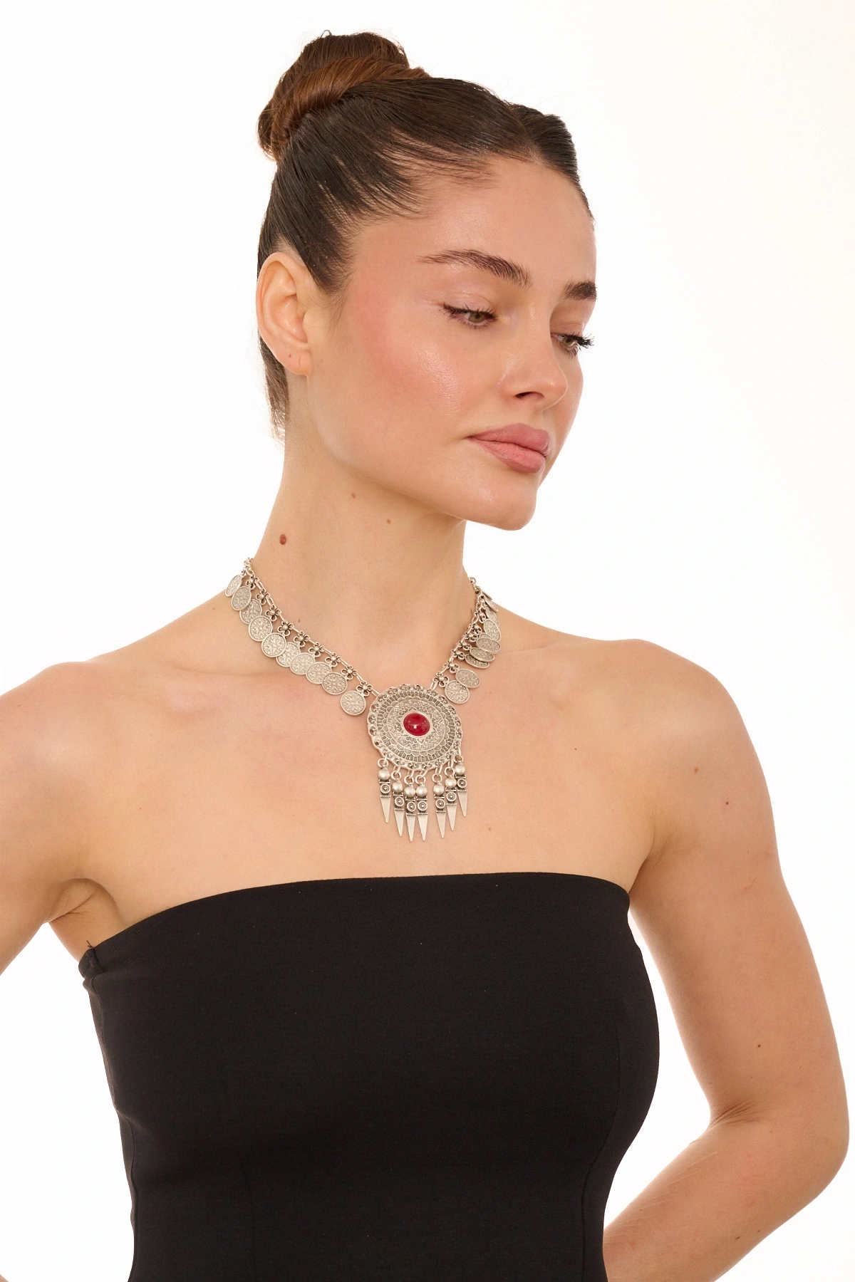 Kiraz Burgundy Stoned Silver Plated Necklace