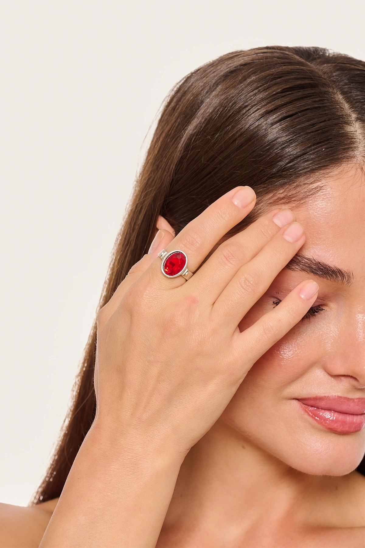 Kiraz Pink Crystal Stoned Silver Plated Ring
