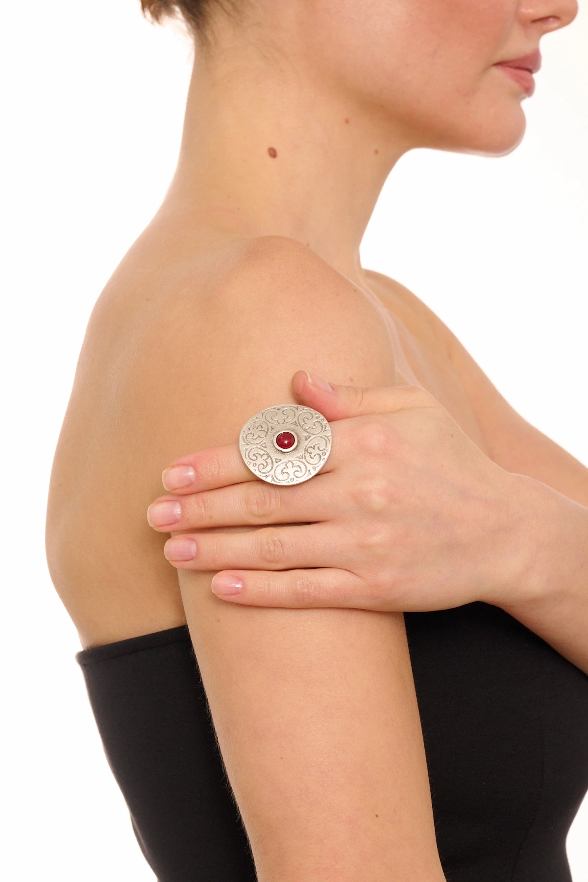 Kiraz Burgundy Stoned Silver Plated Eye Ring
