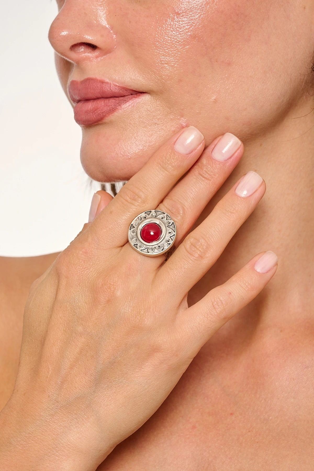 Kiraz Burgundy Stoned Silver Plated Ring