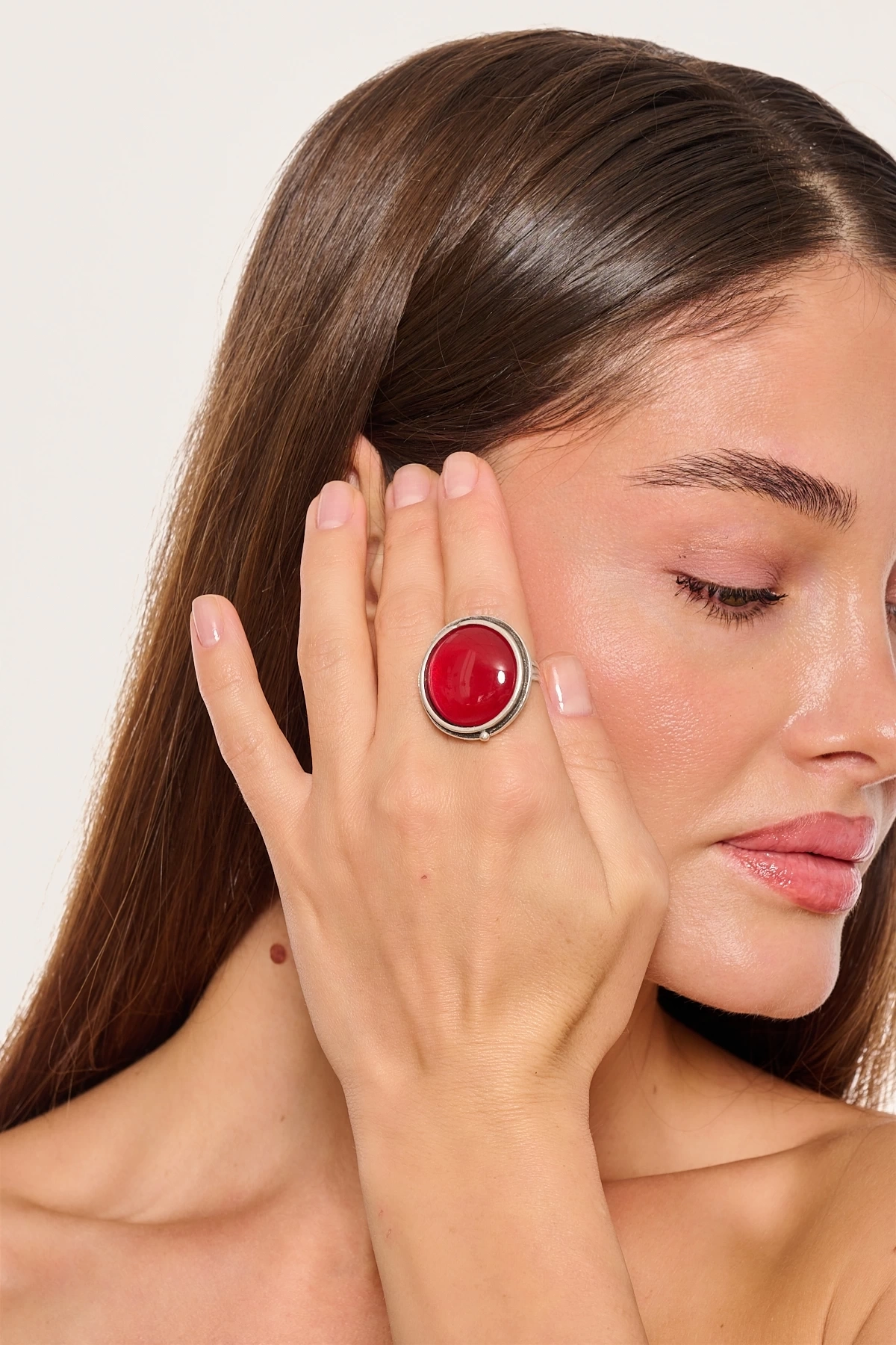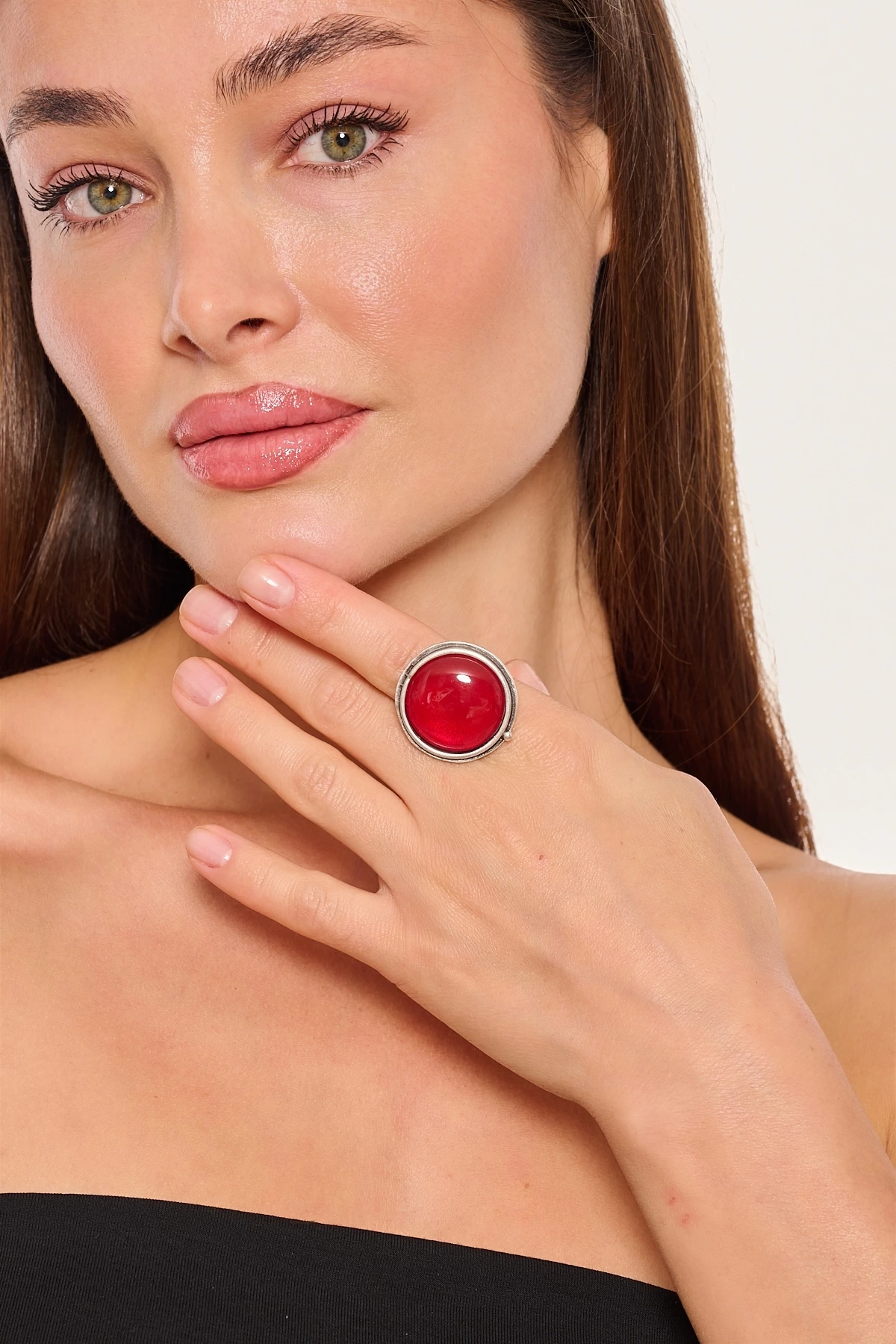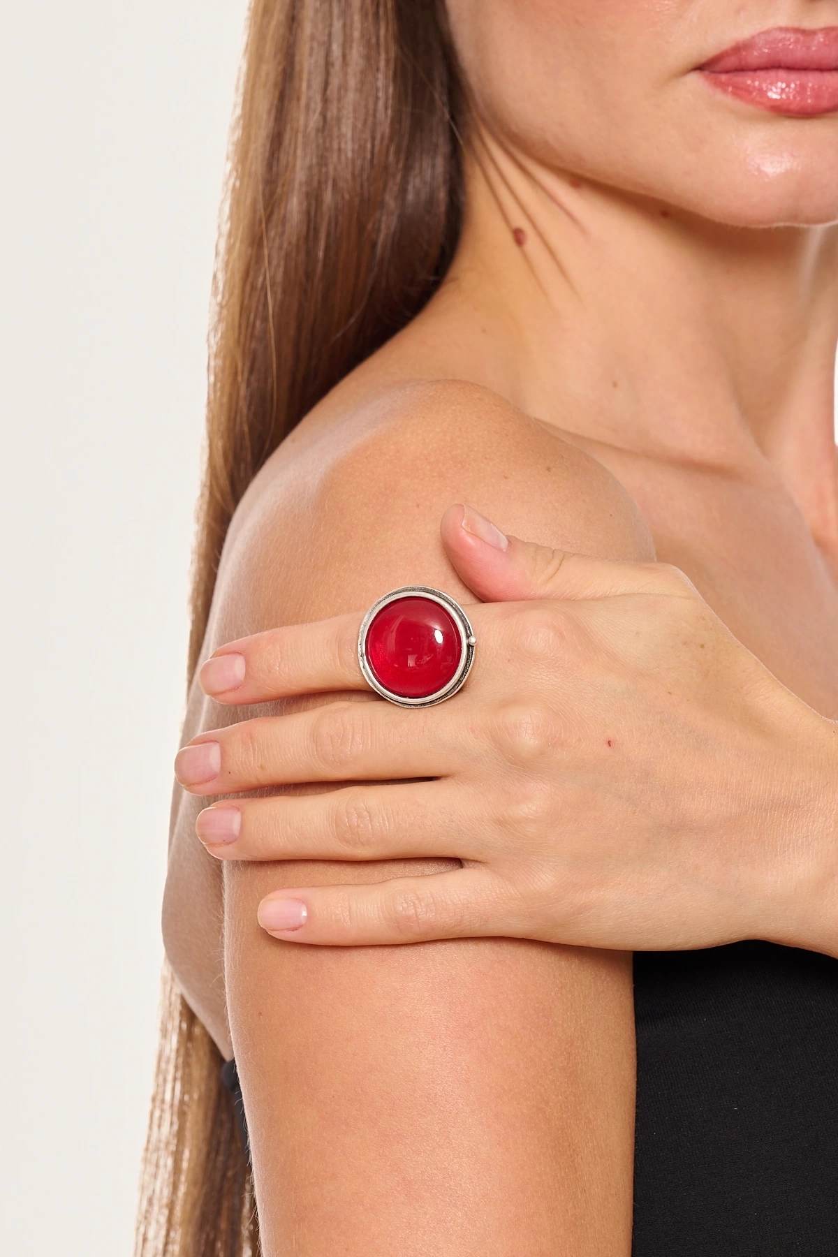Kiraz Pink Crystal Stoned Silver Plated Ring