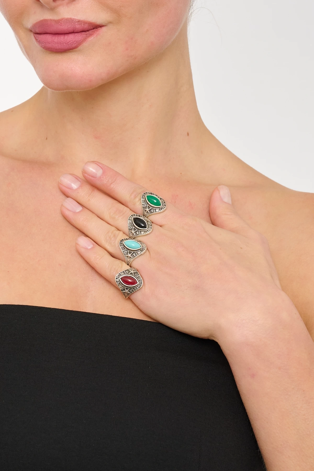 Kiraz Turquoise Stoned Silver Plated Eye Ring