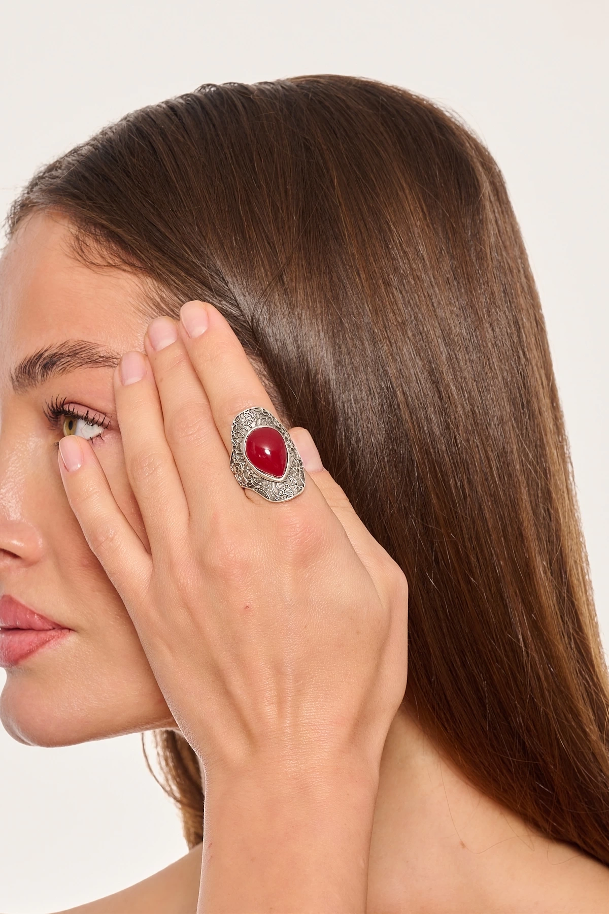 Kiraz Pink Crystal Stoned Silver Plated Ring