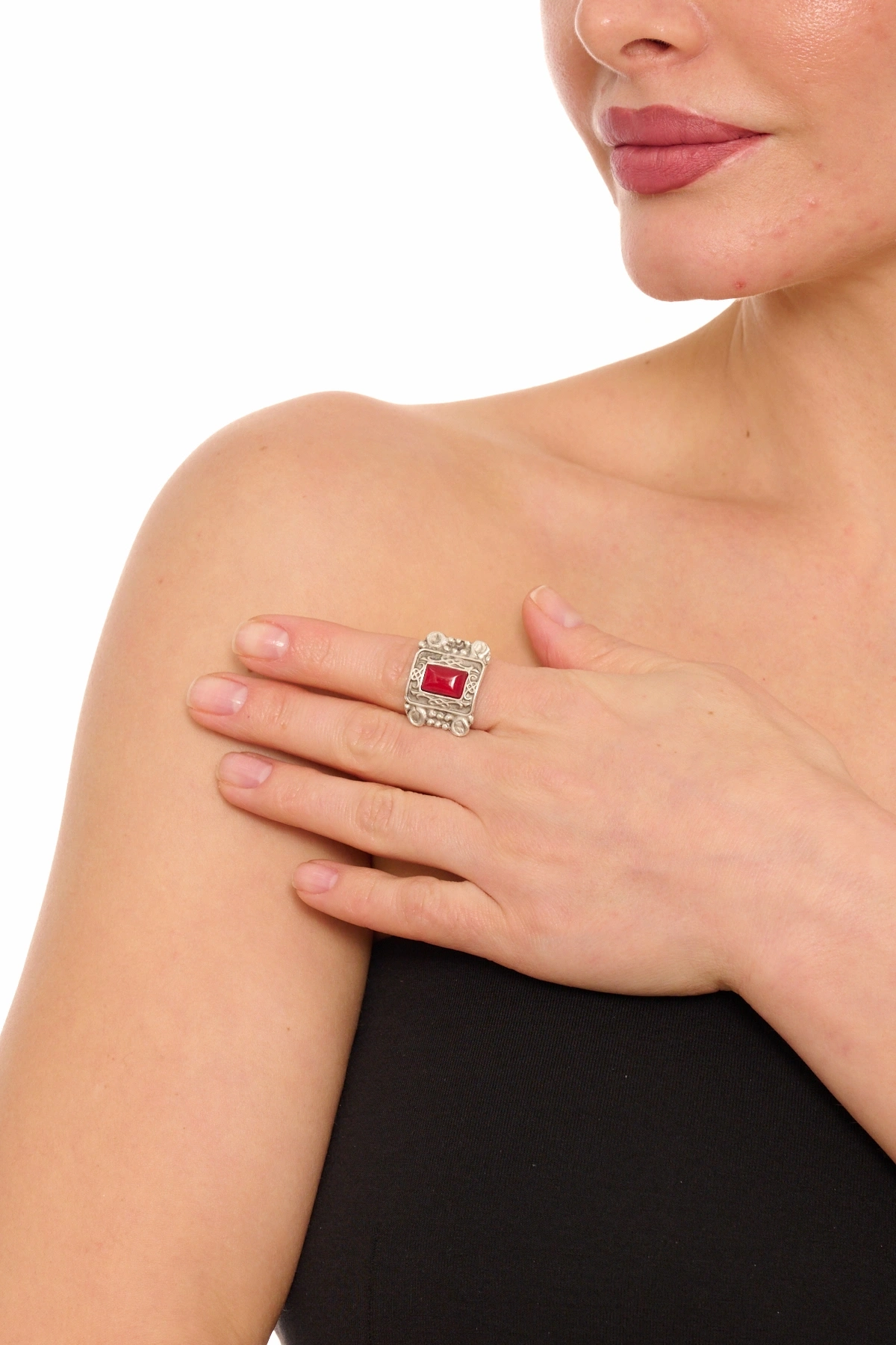 Kiraz Burgundy Stoned Silver Plated Eye Ring