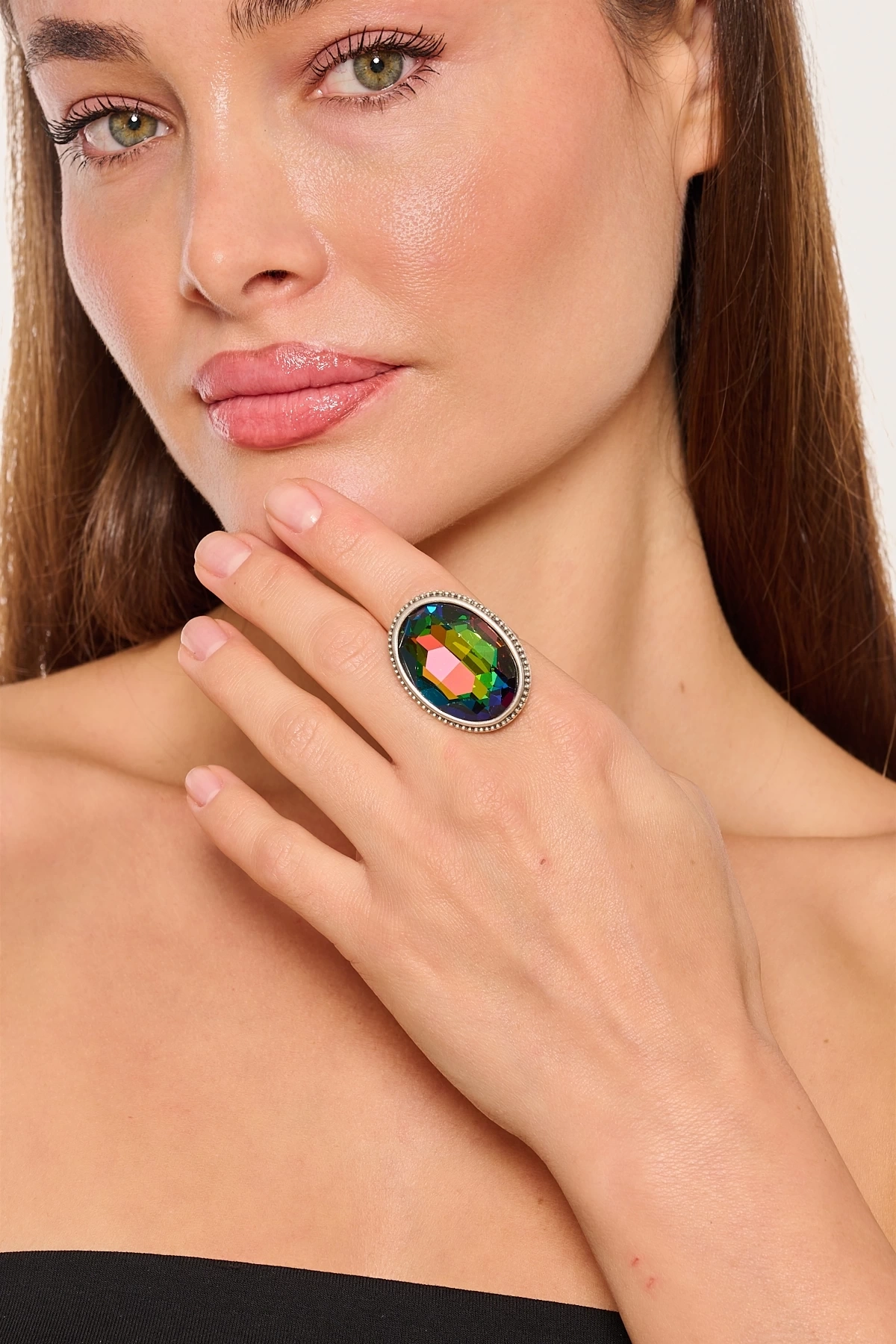 Kiraz Smoked Crystal Stoned Silver Plated Ring