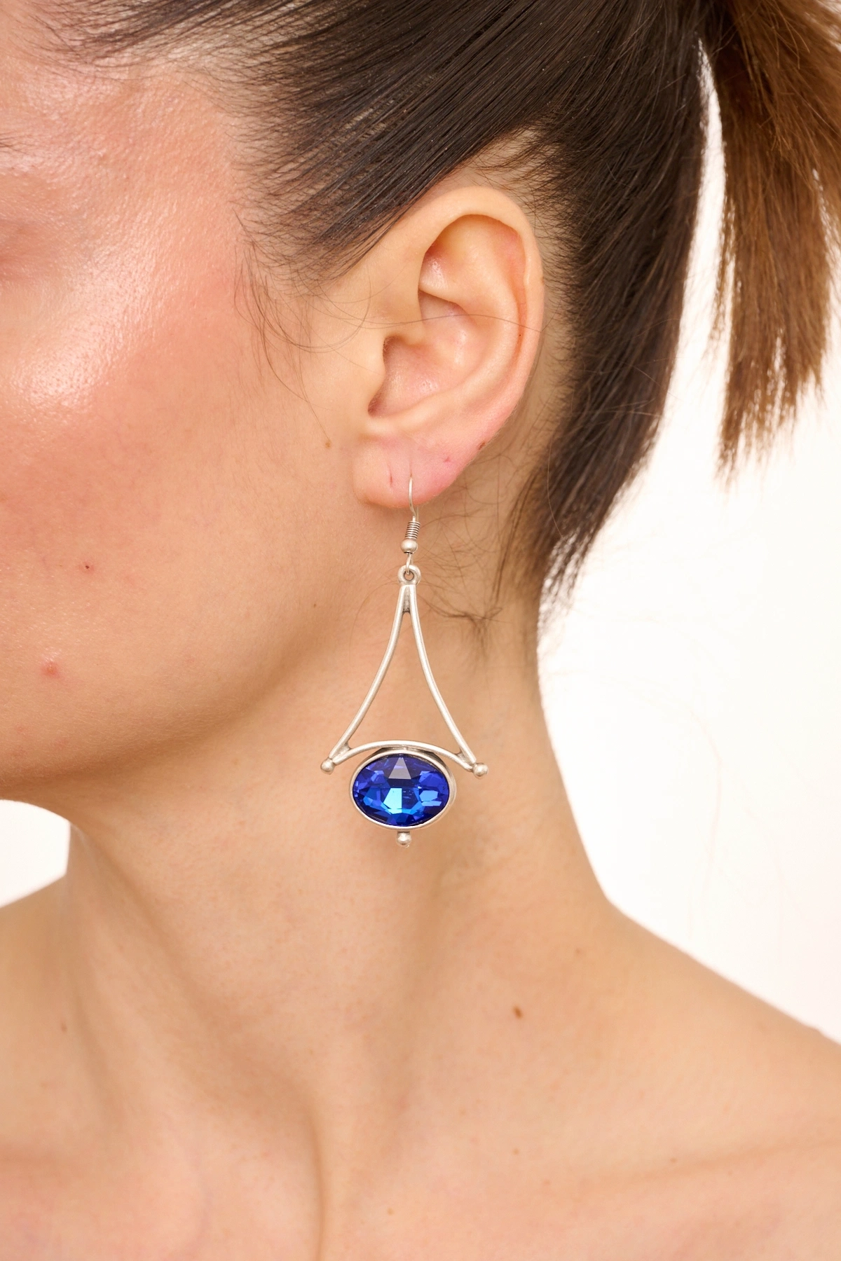 Kiraz Blue Crystal Stoned Silver Plated Earring