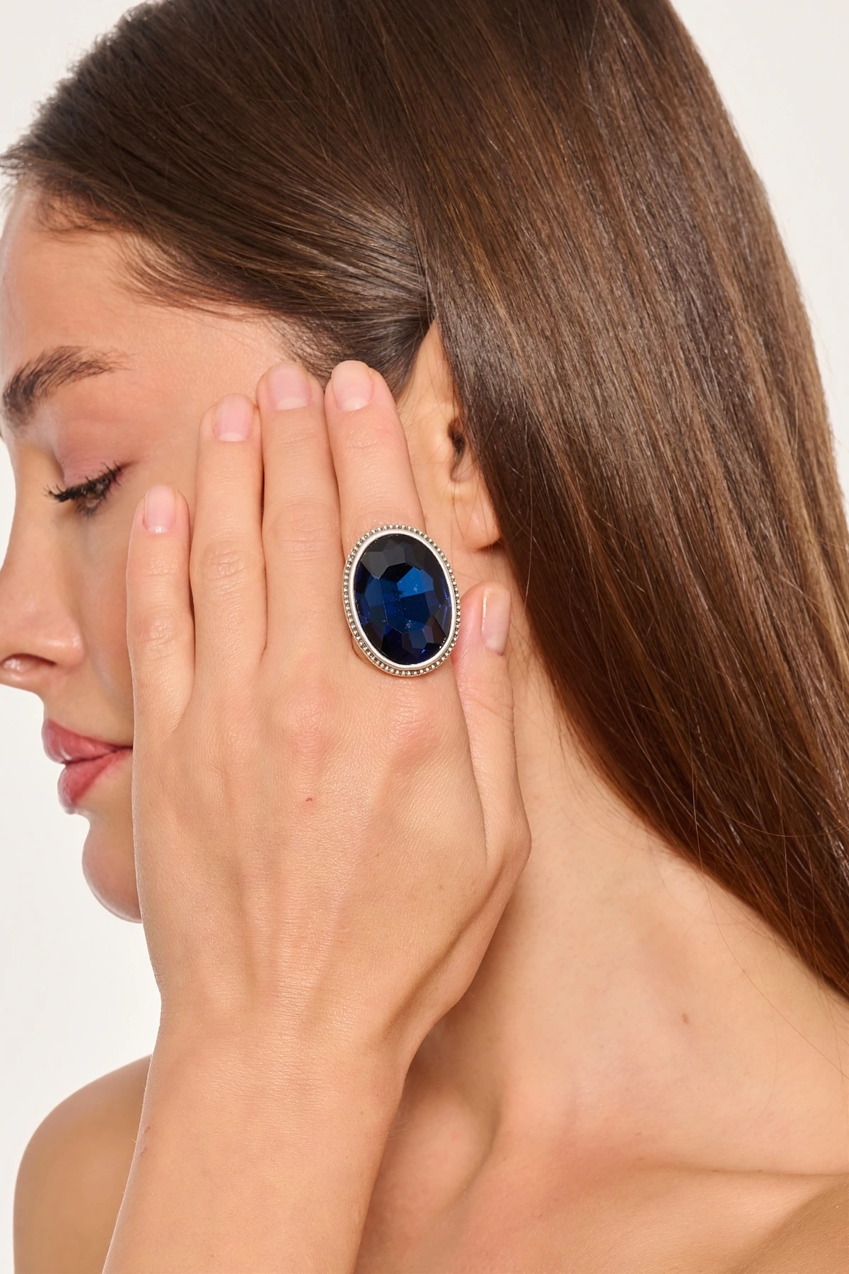 Kiraz Blue Crystal Stoned Silver Plated Ring