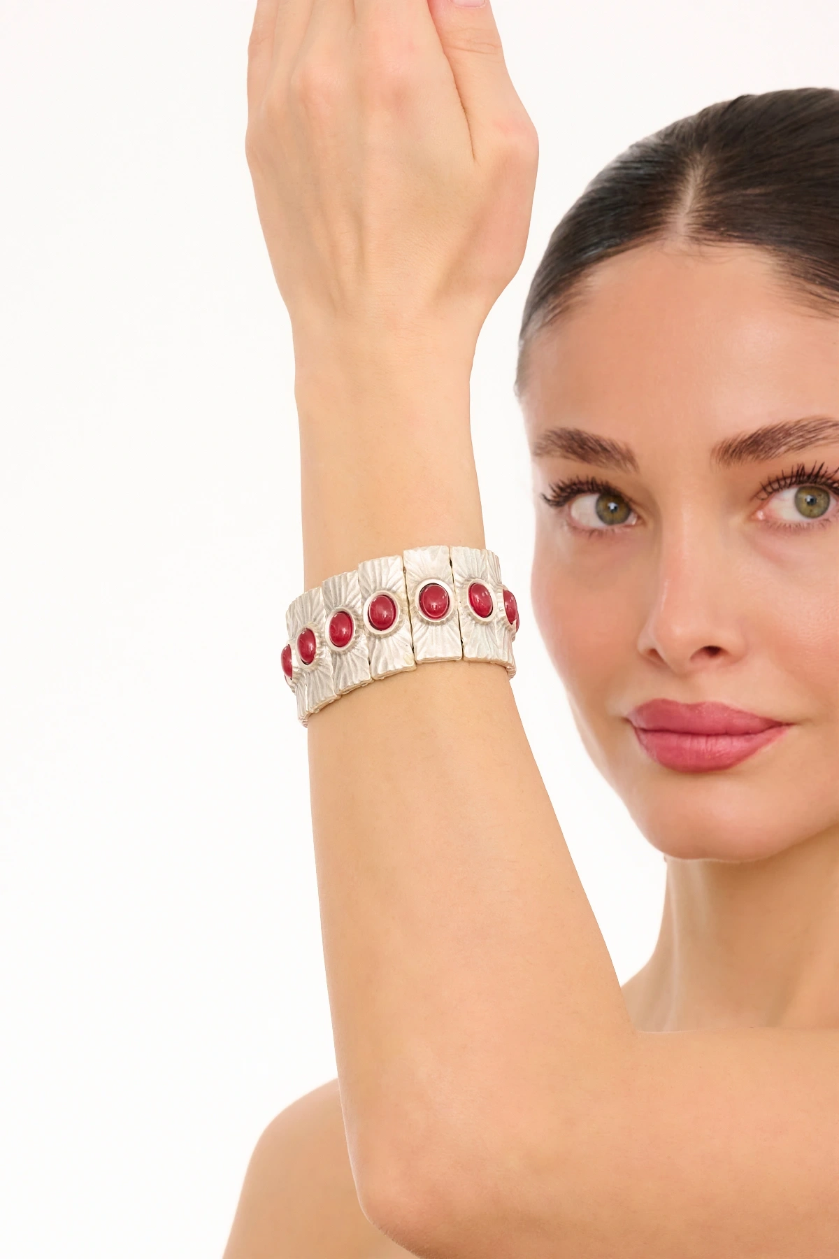 Kiraz Burgundy Stoned Silver Plated Bracelet