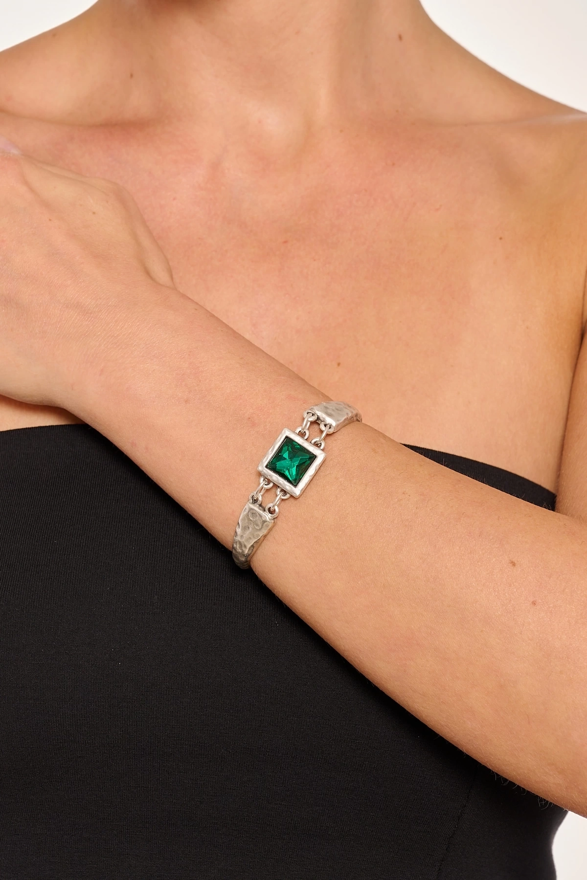 Kiraz Emerald Crystal Stoned Silver Plated Bracelet