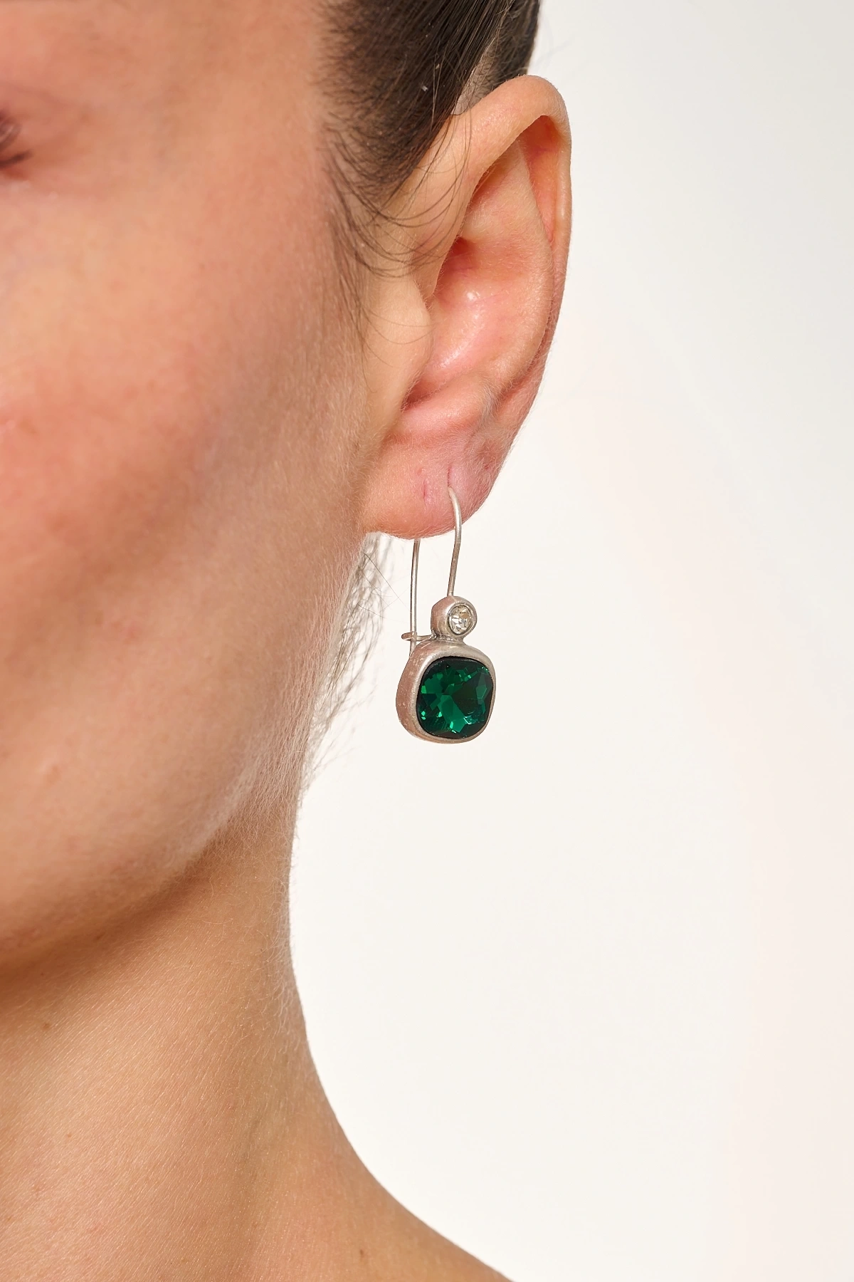 Kiraz Emerald Crystal Stoned Silver Plated Earring