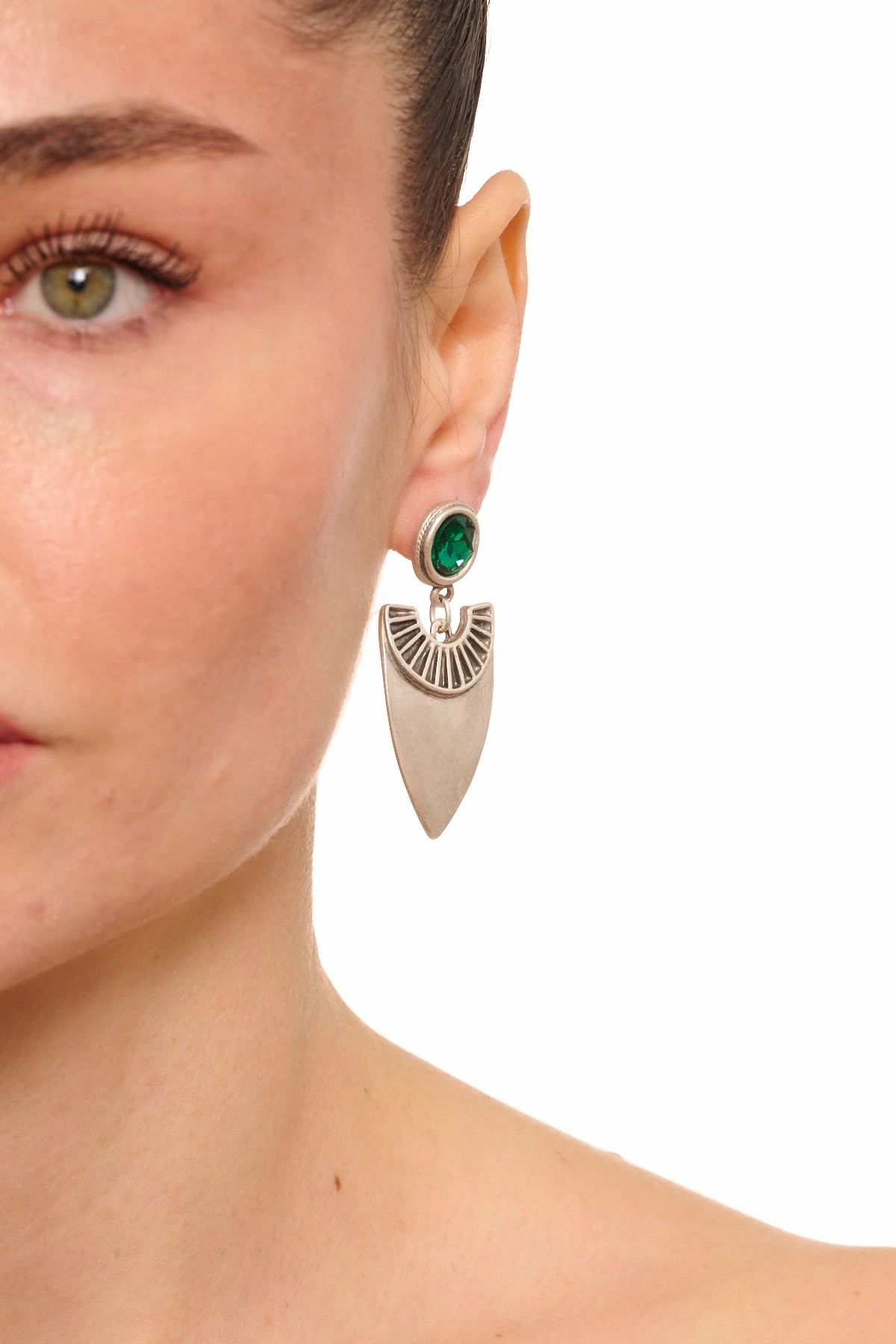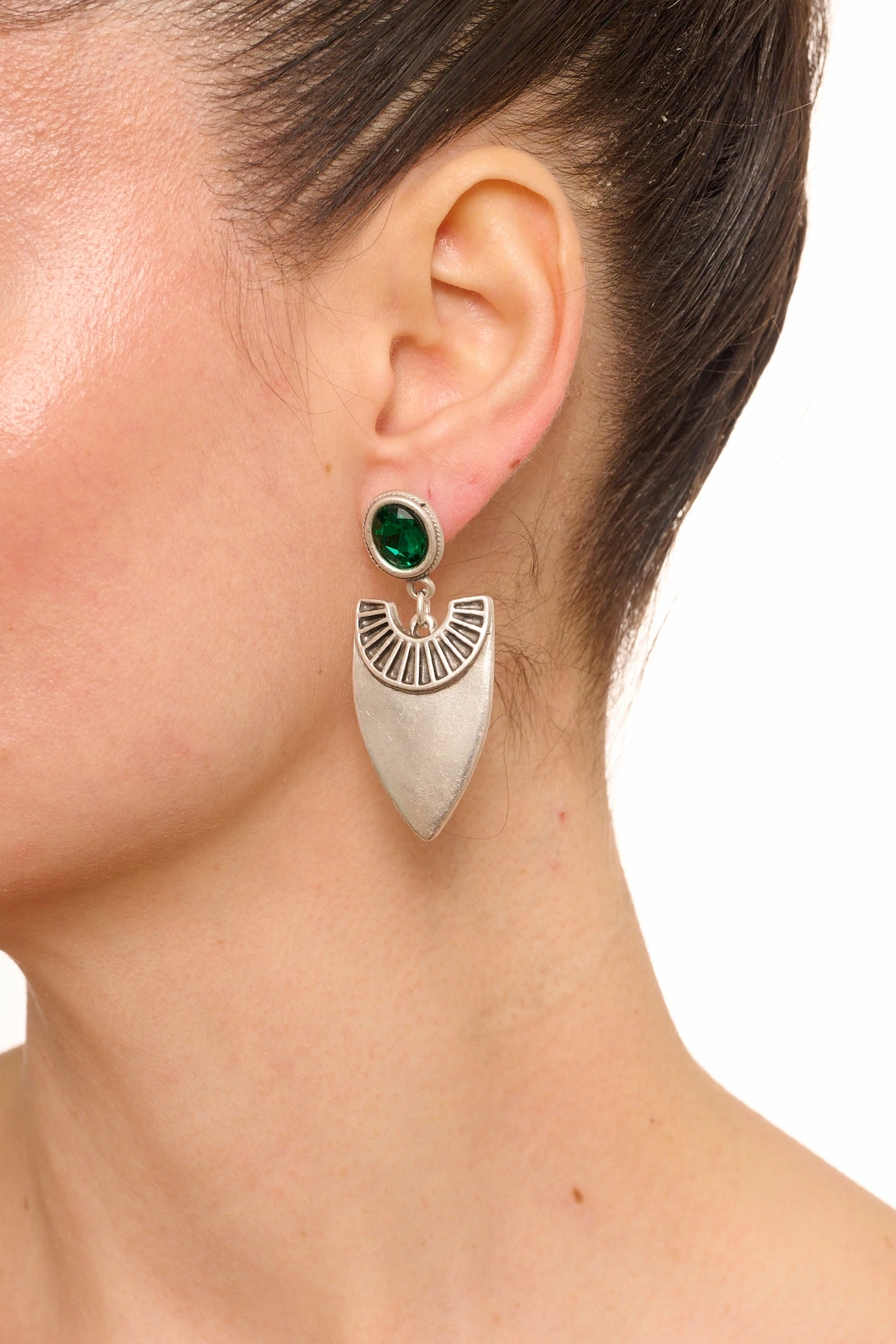 Kiraz Emerald Crystal Stoned Silver Plated Earring