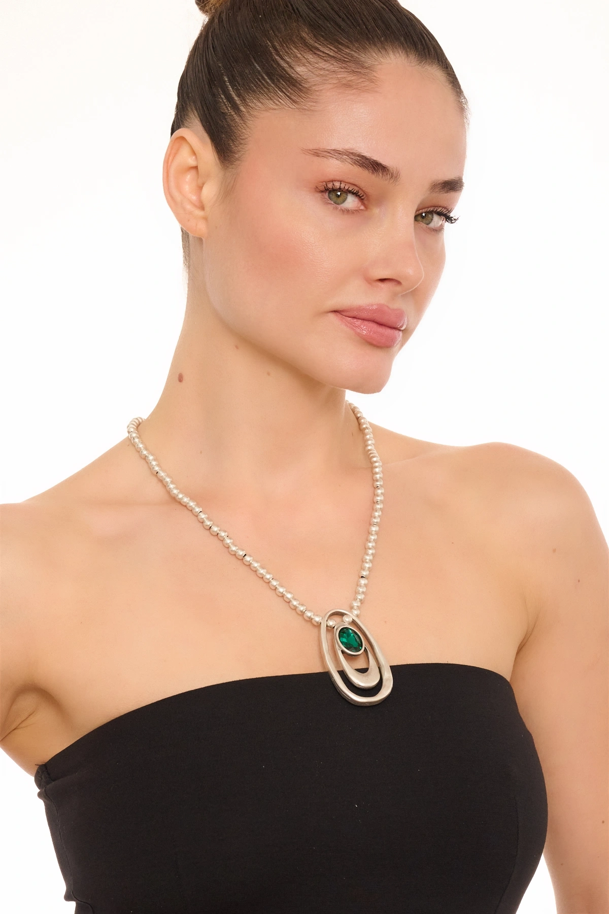 Kiraz Emerald Crystal Stoned Silver Plated Necklace
