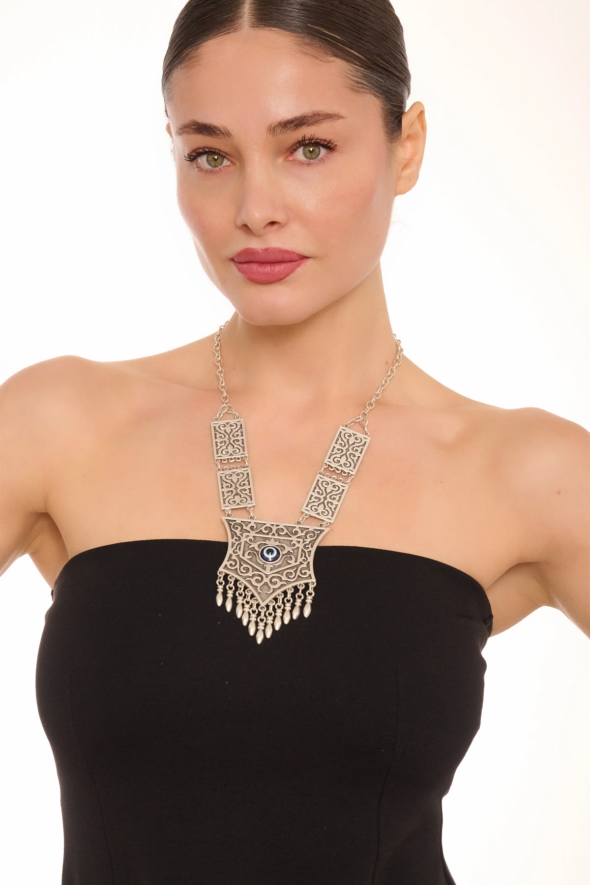 Kiraz Evil Eye Stoned Silver Plated Necklace