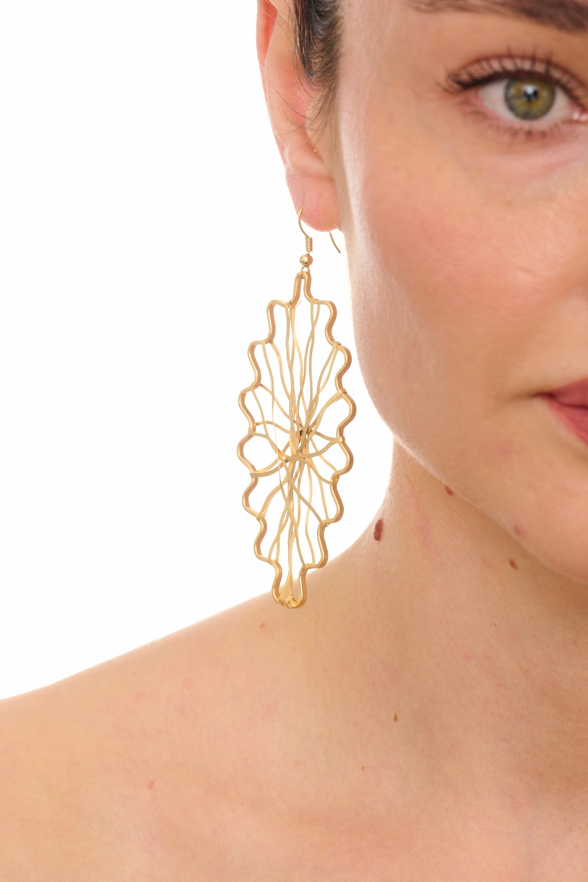 Kiraz Gold Plated Leaf Earring