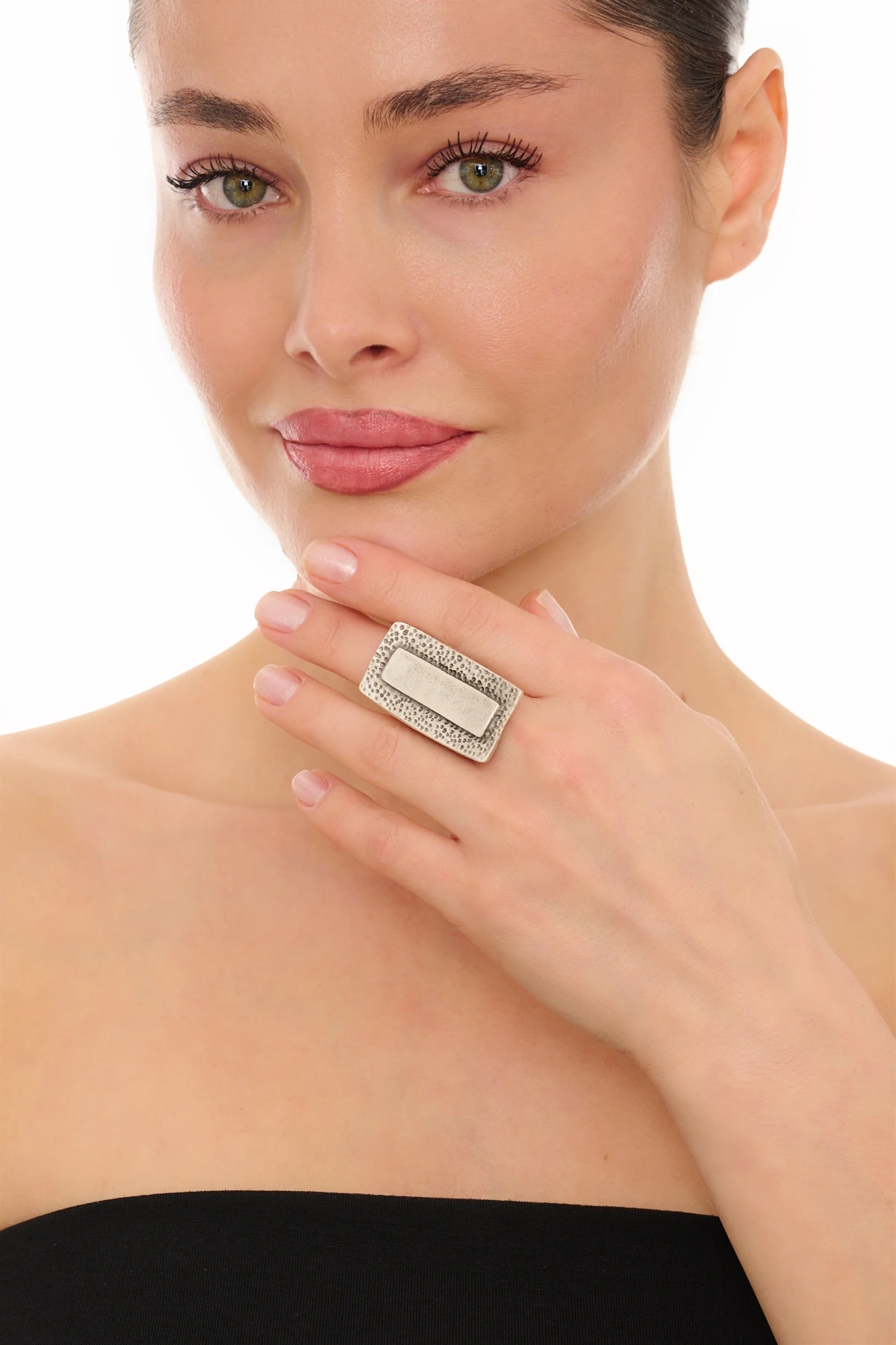 Kiraz Green Stoned Silver Plated Eye Ring