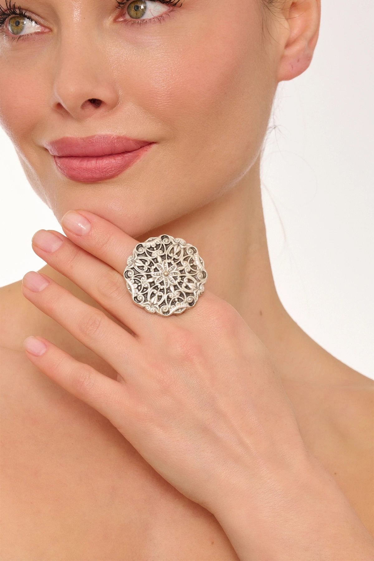 Kiraz Janjan Crystal Stoned Gold Stoned Plated Ring