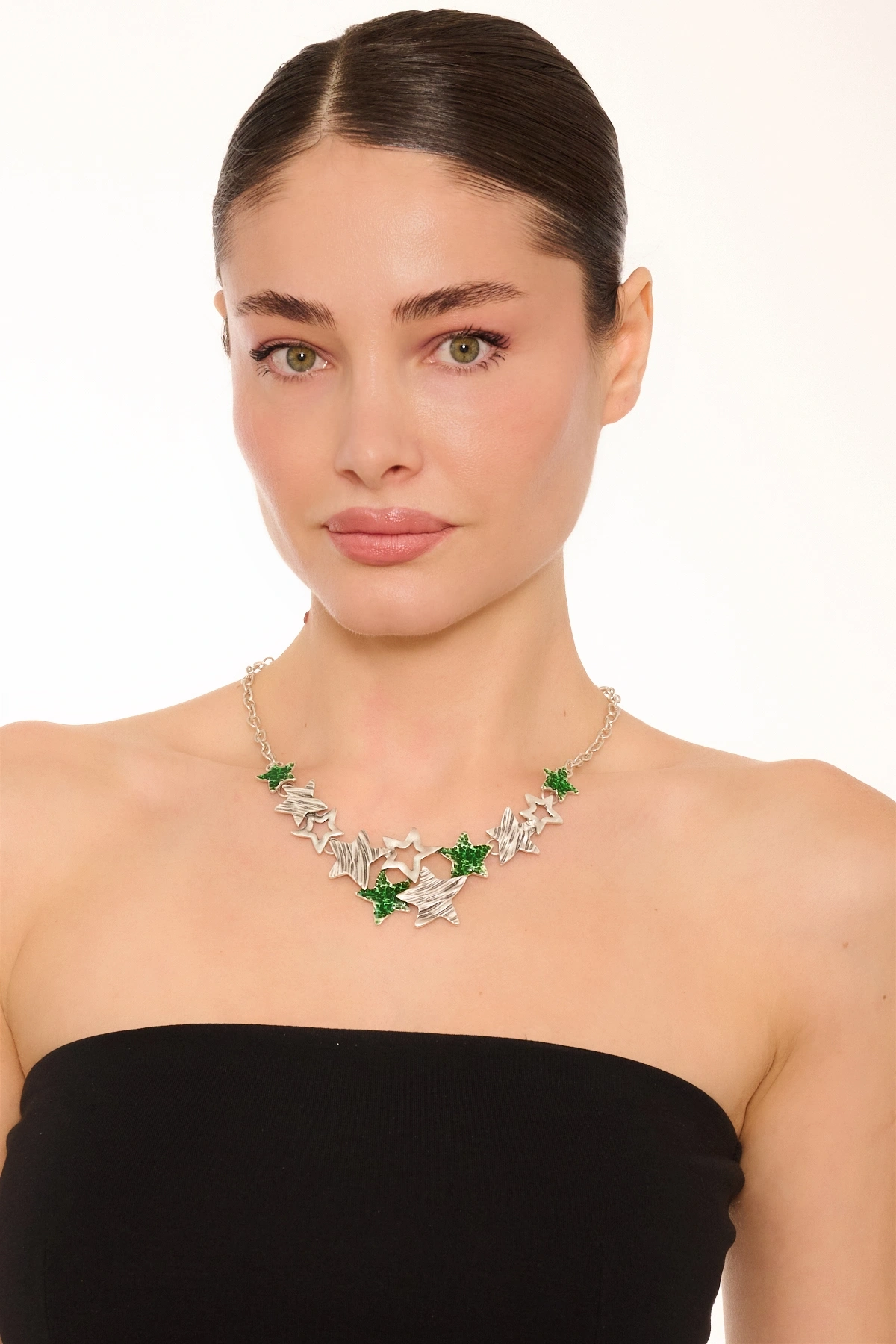 Kiraz Green Enameled Silver Plated Star Necklace