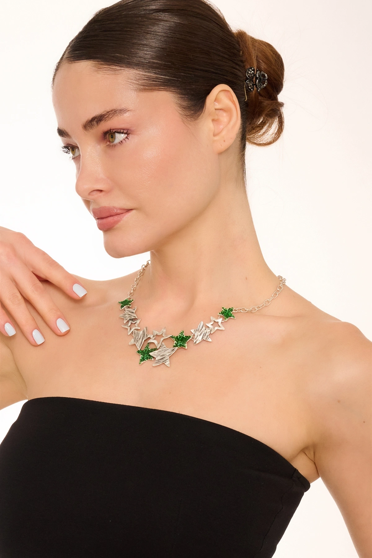 Kiraz Green Stoned Silver Plated Necklace