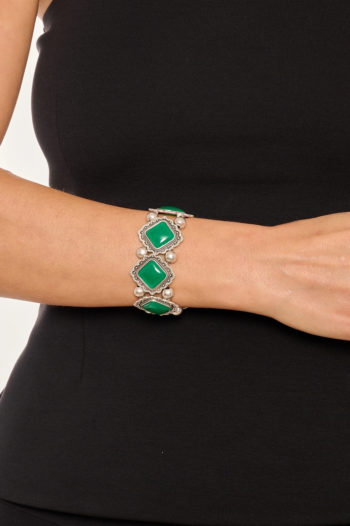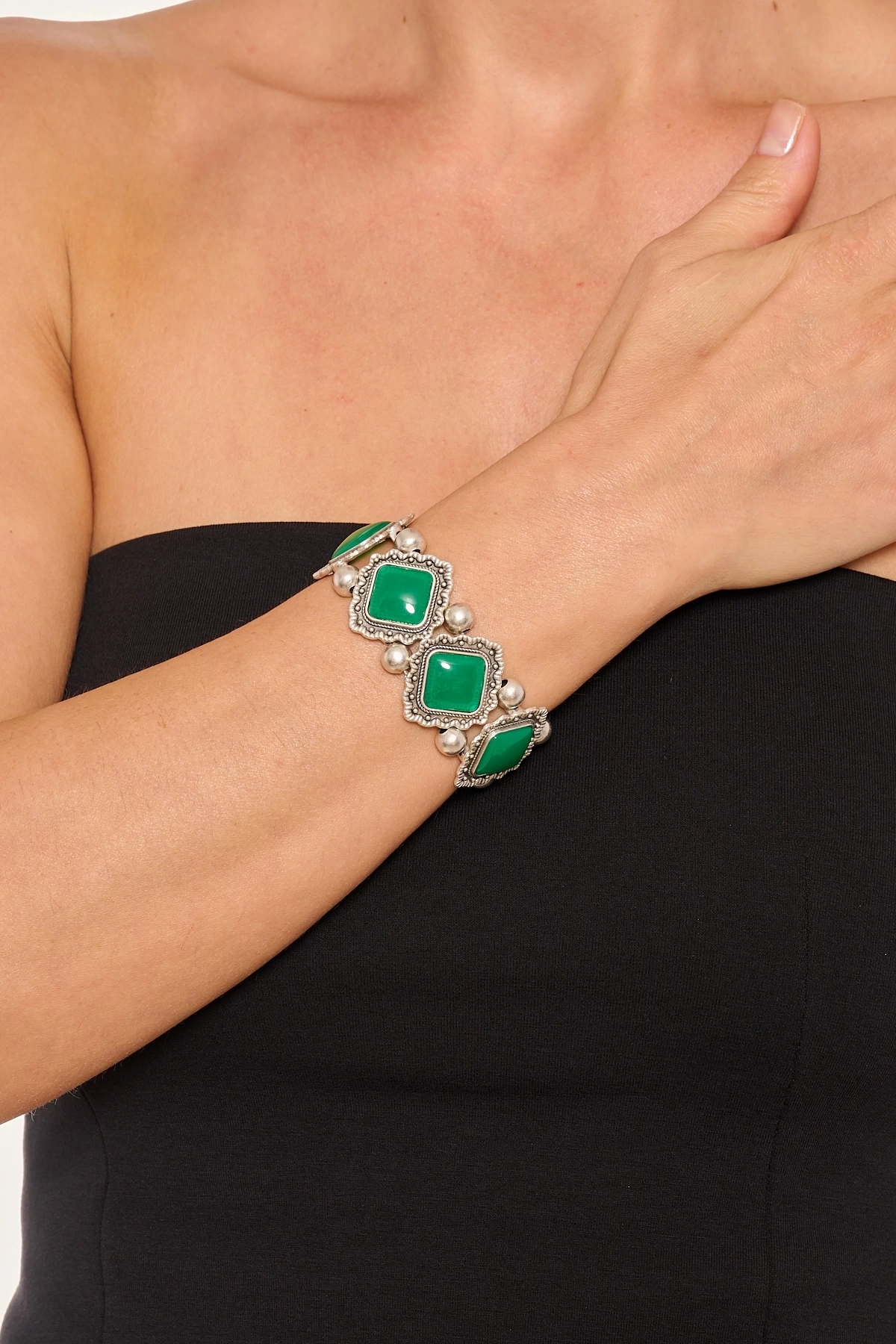 Kiraz Emerald Crystal Stoned Silver Plated Bracelet