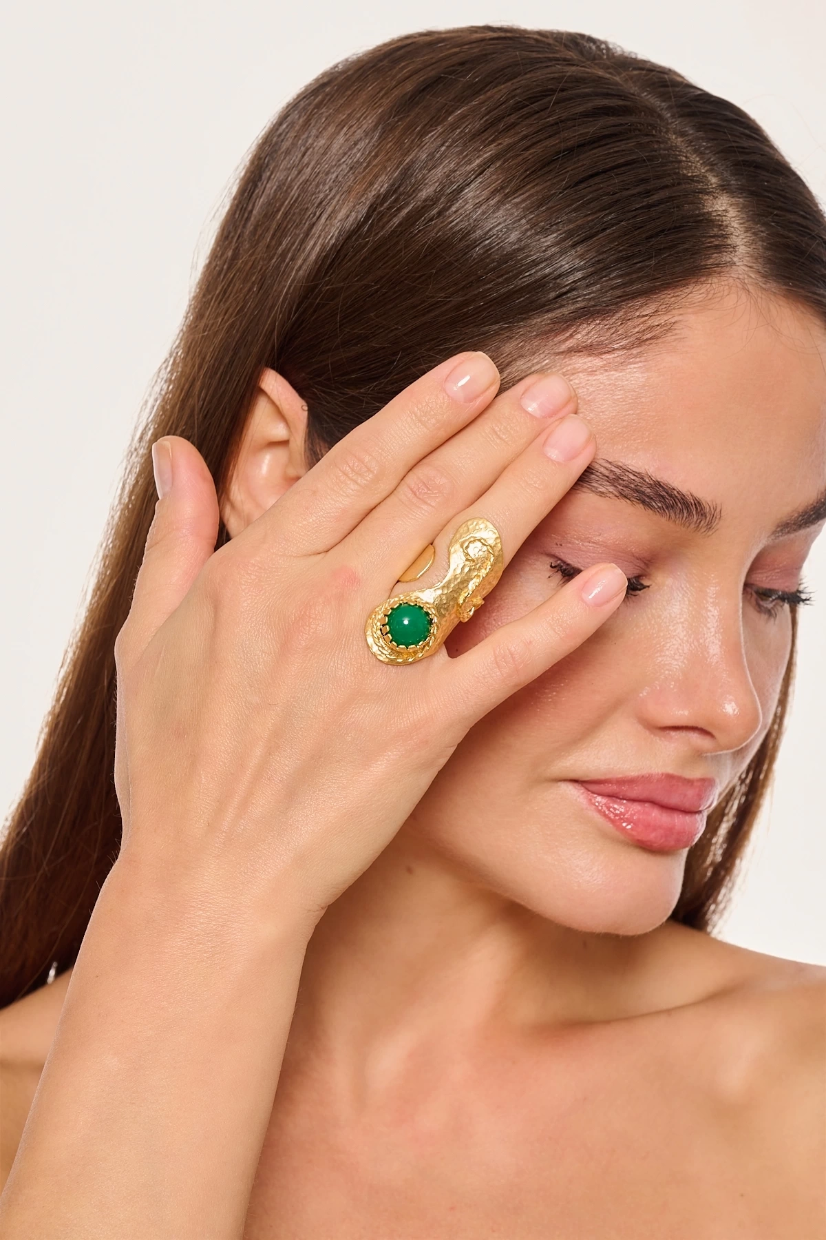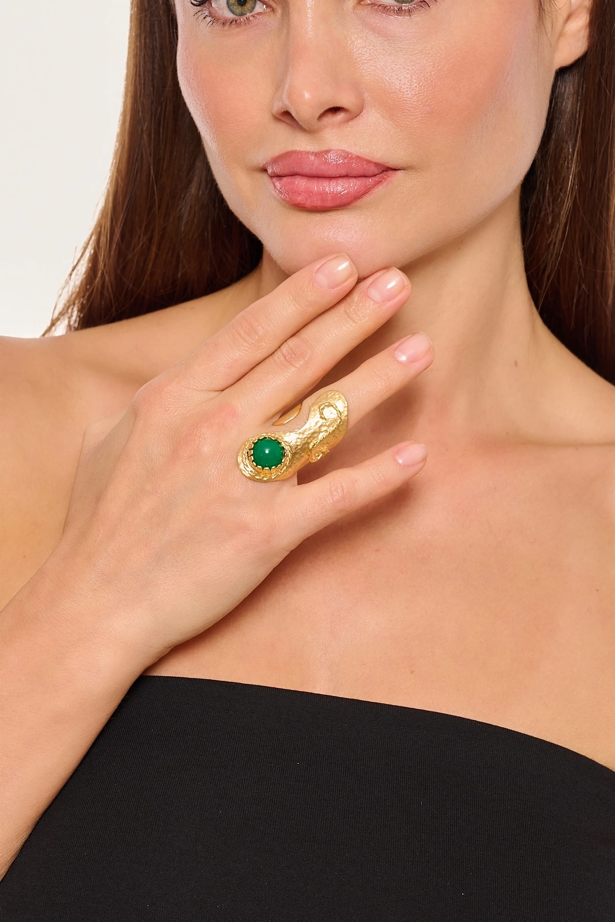 Kiraz Green Stoned Gold Plated Ring