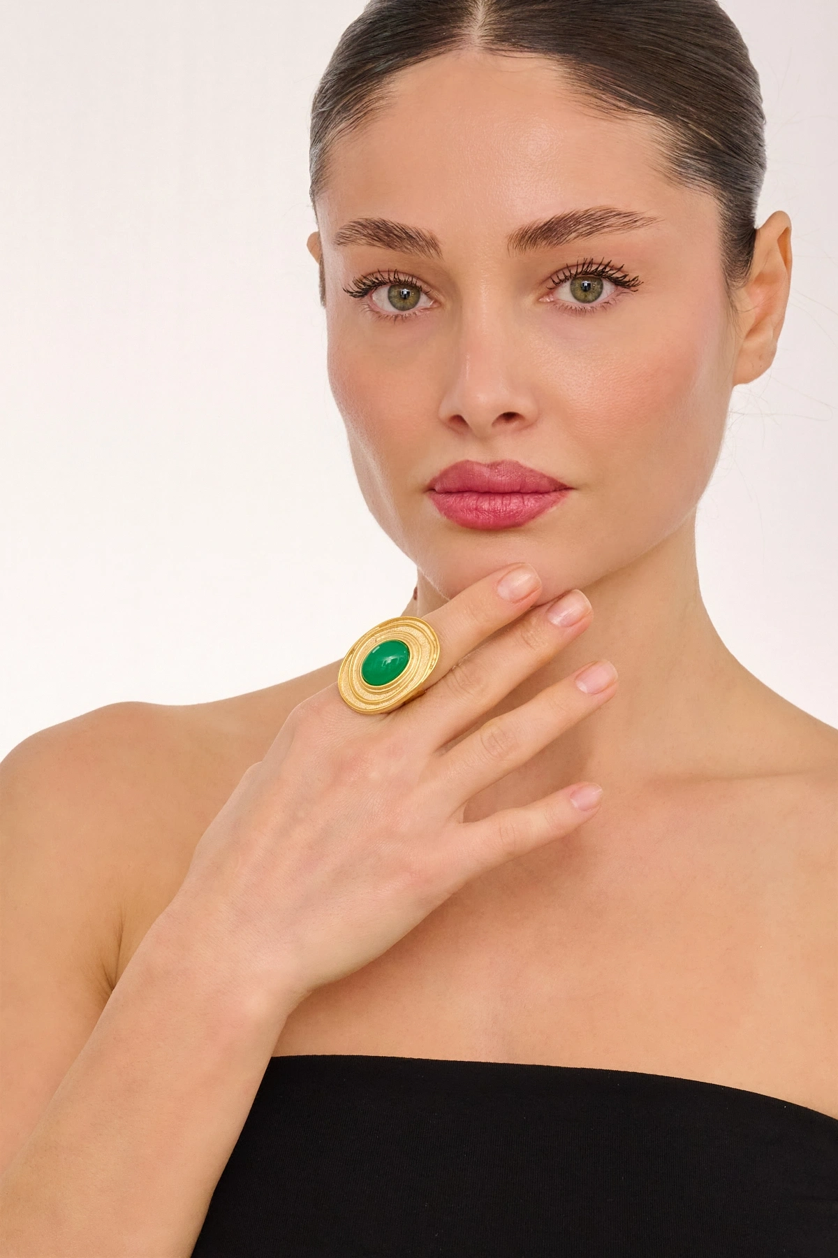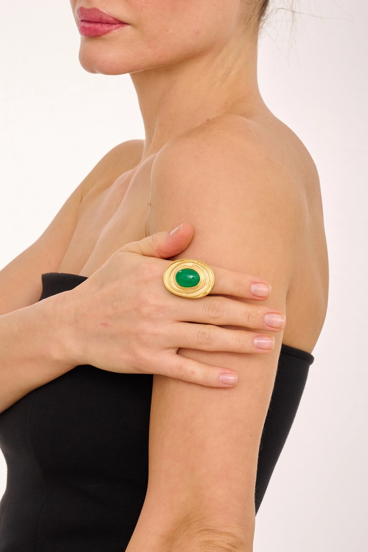 Kiraz Green Stoned Gold Plated Ring