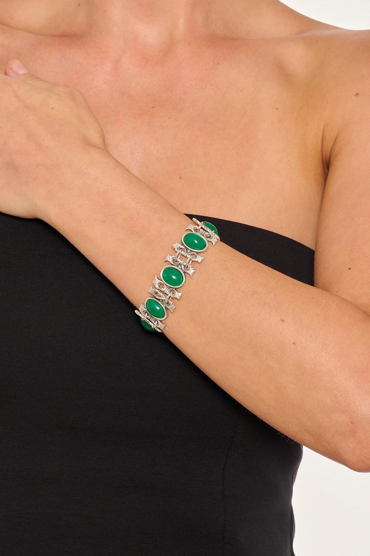 Kiraz Green Stoned Silver Plated Bracelet