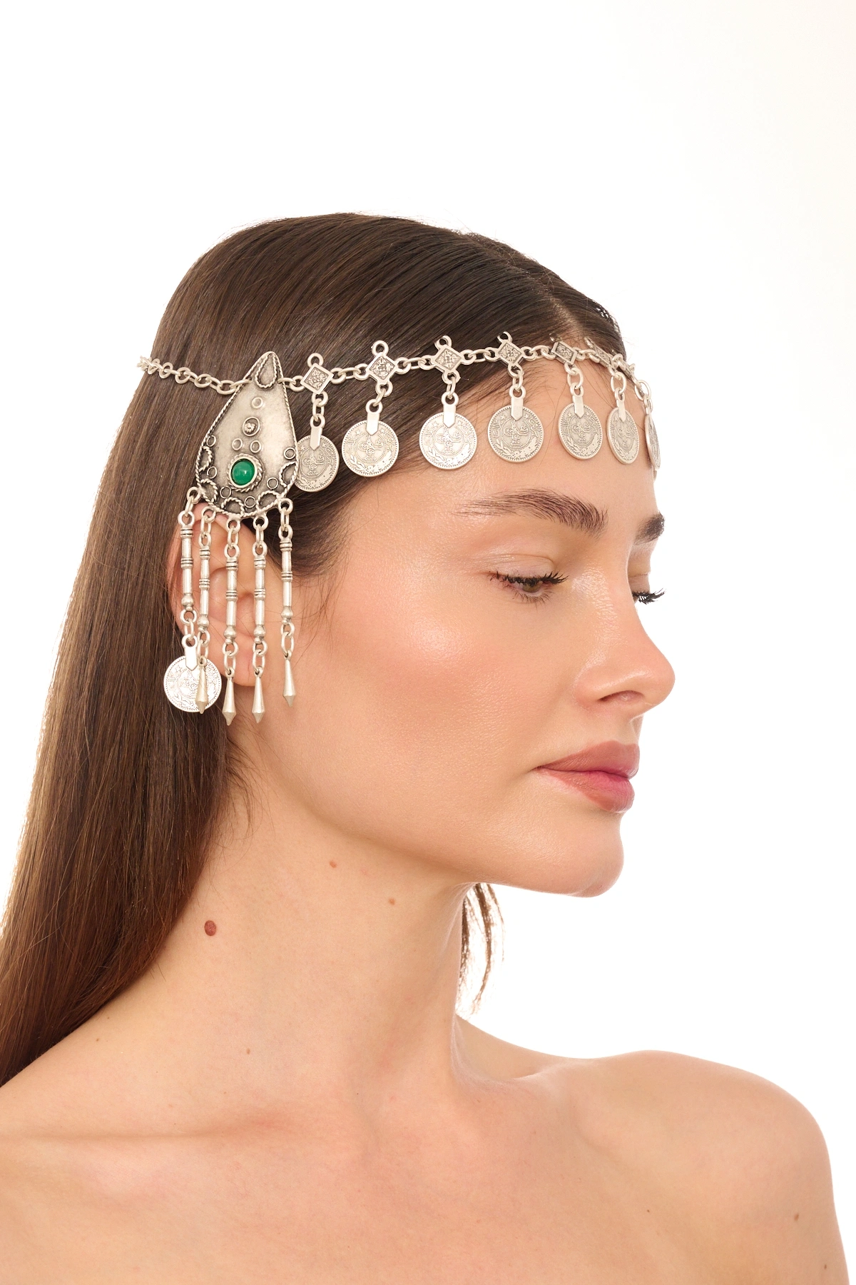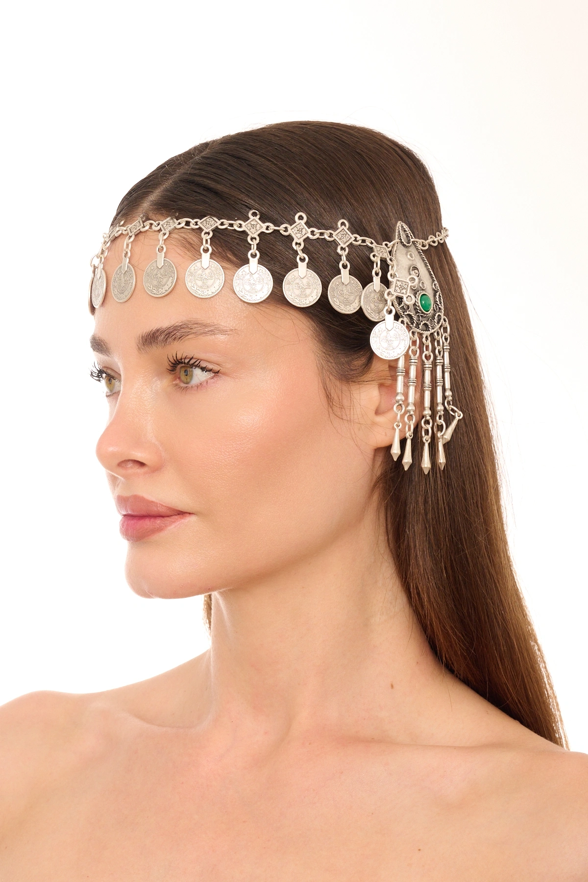 Kiraz Green Stoned Silver Plated Head Accessory
