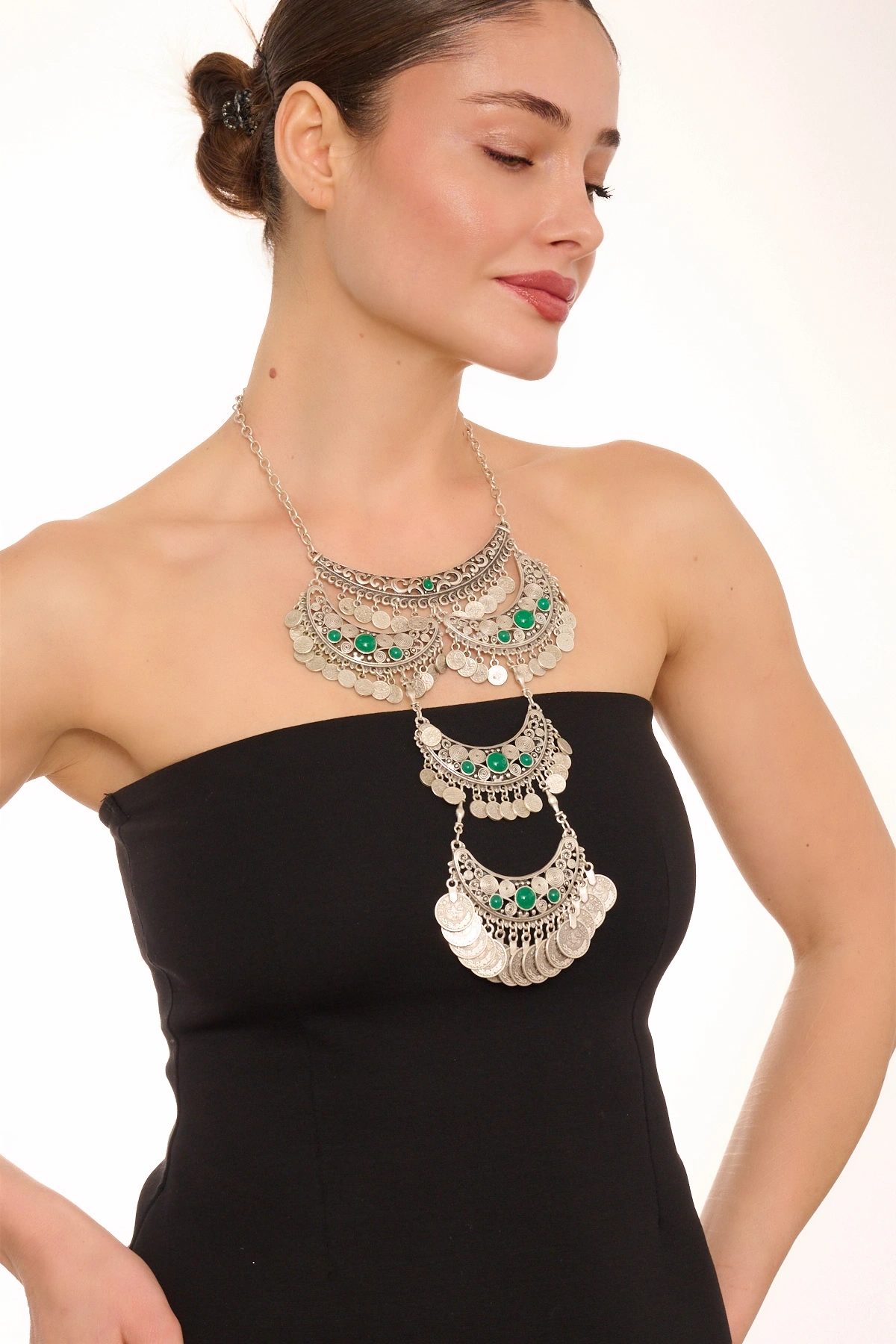 Kiraz Green Stoned Silver Plated Necklace