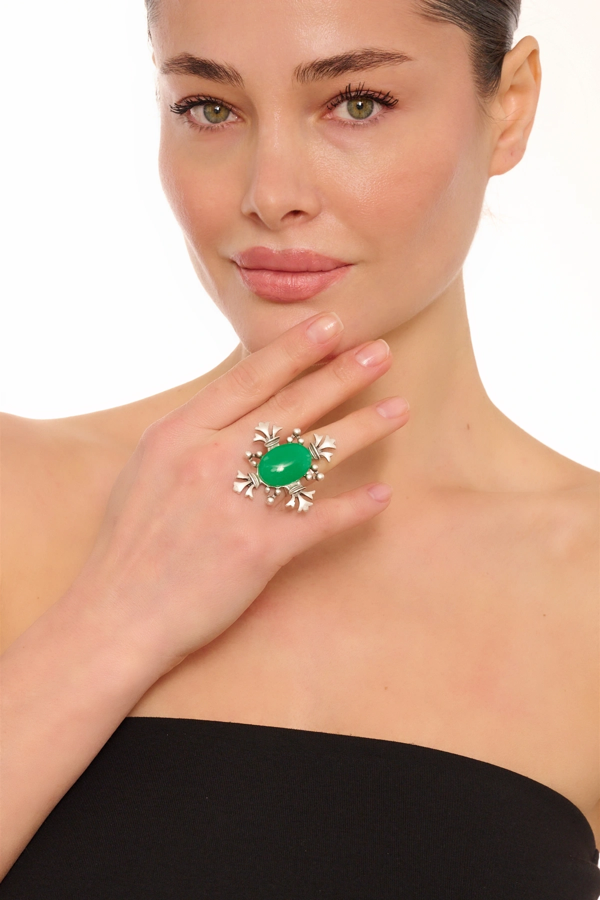 Kiraz Emerald Crystal Stoned Silver Plated Ring