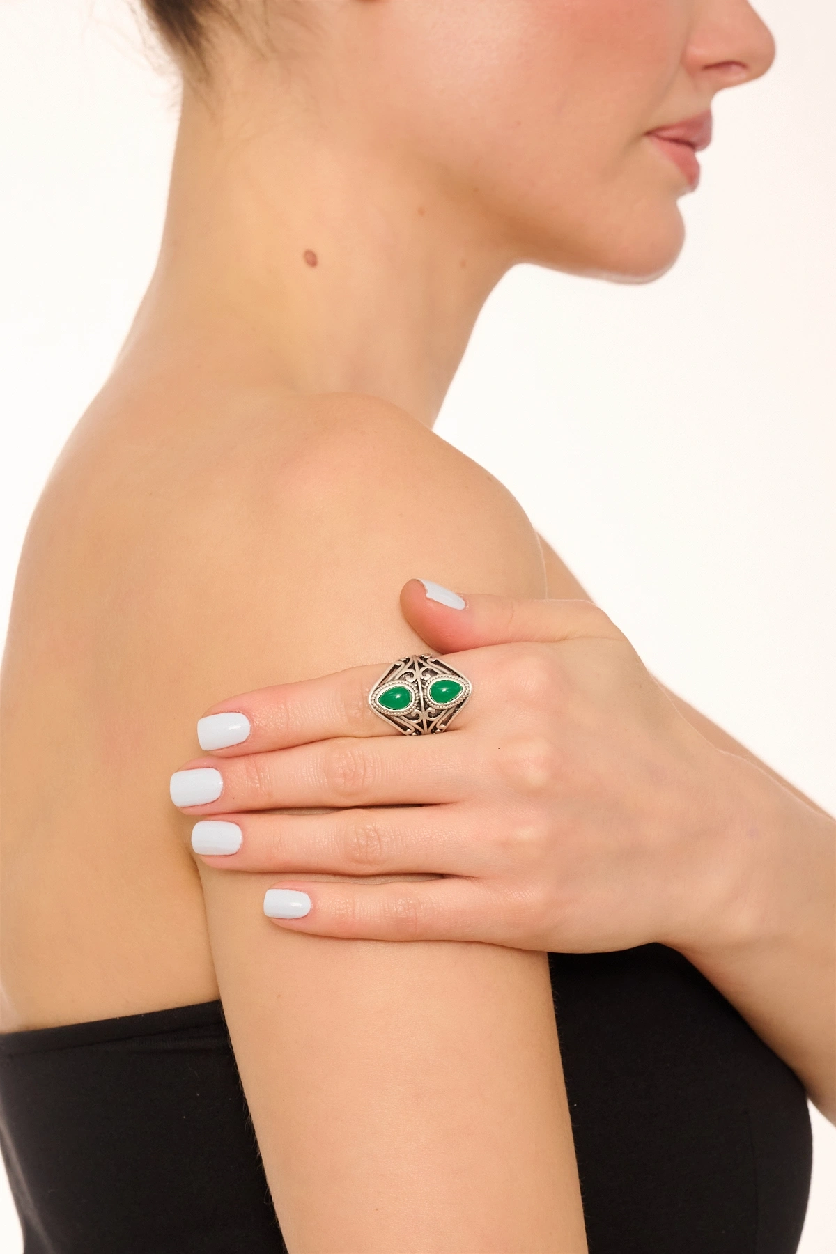 Kiraz Green Stoned Silver Plated Eye Ring