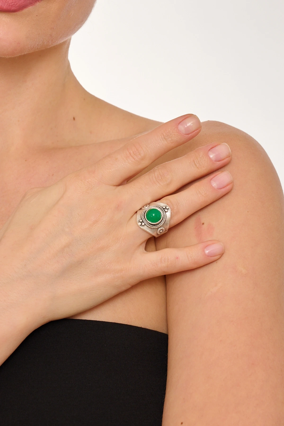 Kiraz Evil Eye Stoned Silver Plated Ring