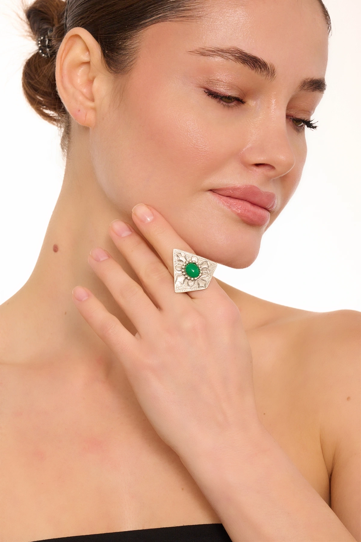 Kiraz Green Stoned Silver Plated Eye Ring