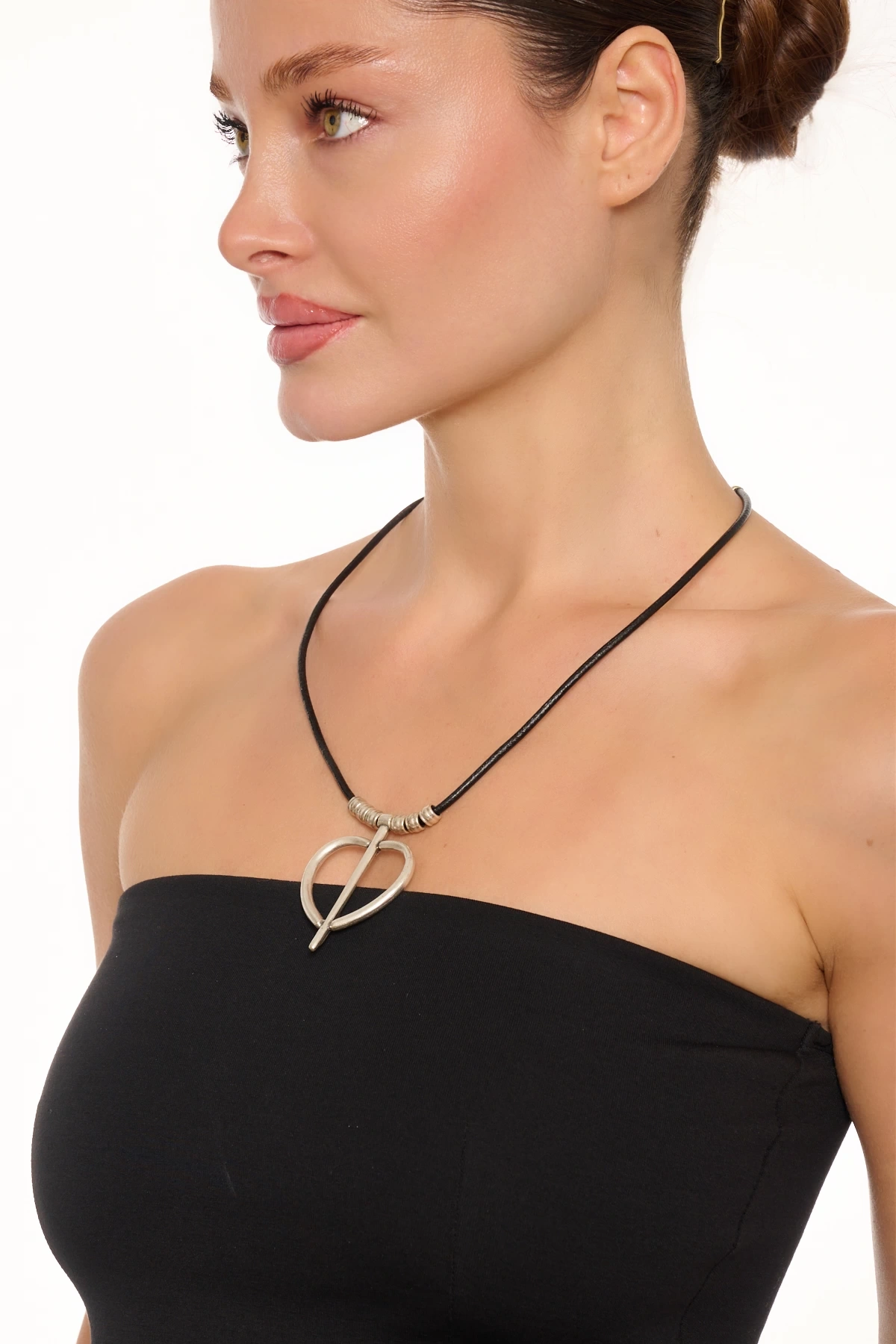 Kiraz Black Crystal Stoned Silver Plated Lightning Necklace
