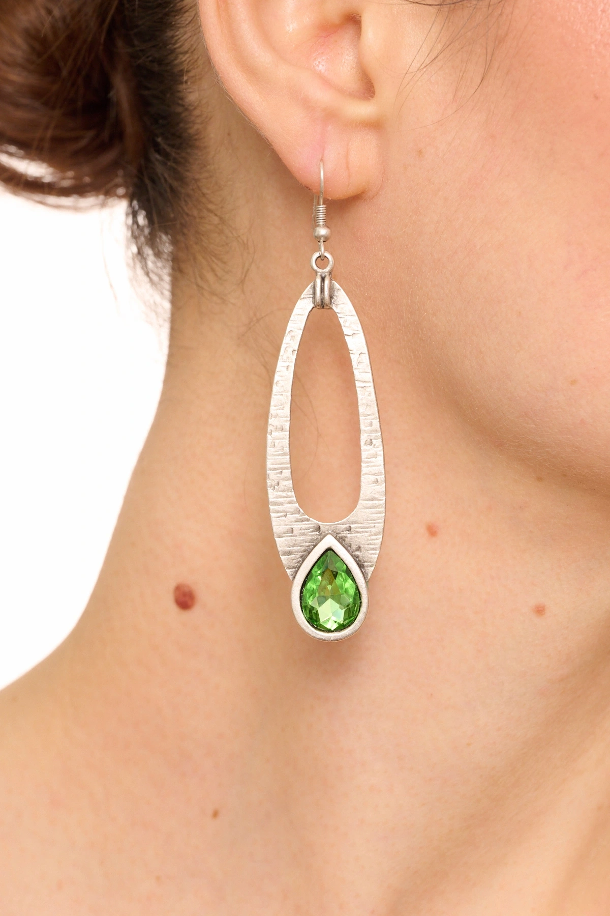 Kiraz Light Green Crystal Stoned Gold Plated Earring