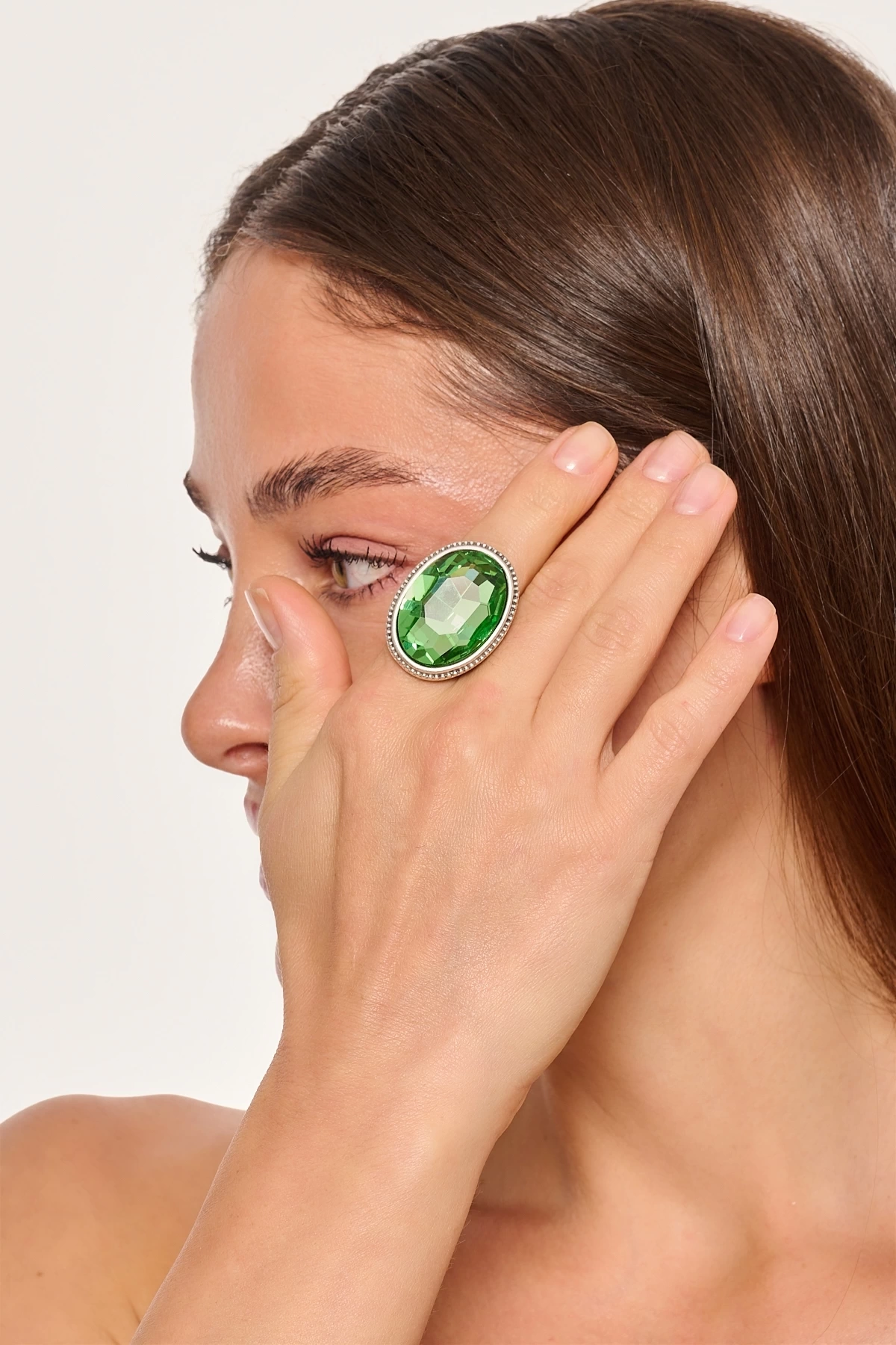 Kiraz Light Green Crystal Stoned Gold Plated Ring