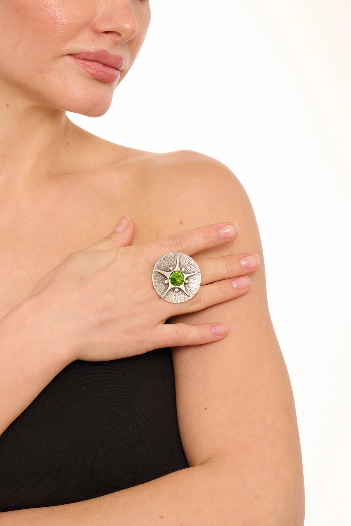 Kiraz Green Stoned Silver Plated Eye Ring