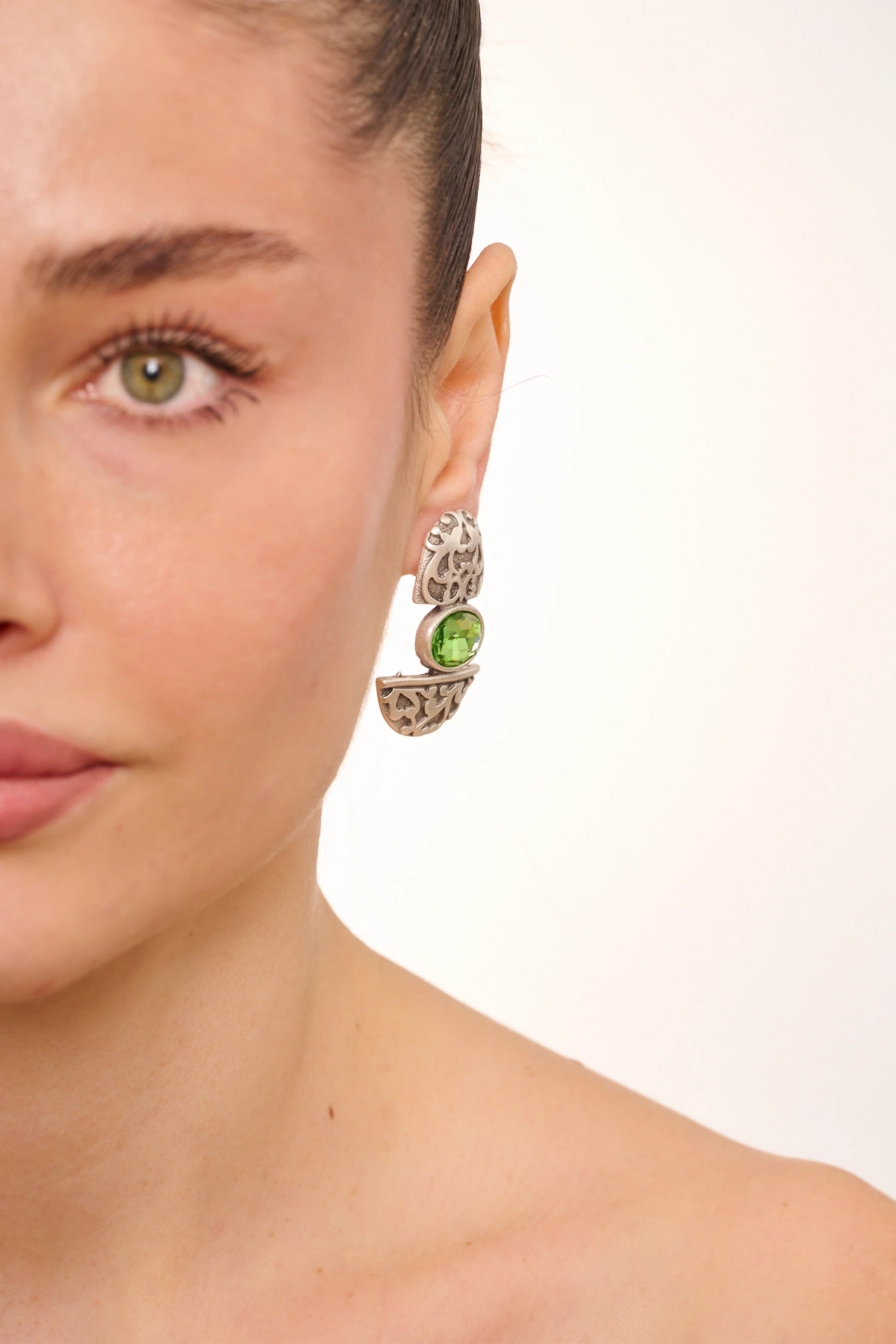 Kiraz Emerald Crystal Stoned Silver Plated Earring
