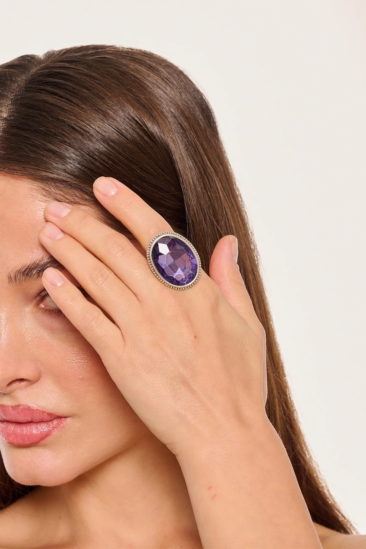 Kiraz Purple Crystal Stoned Silver Plated Ring