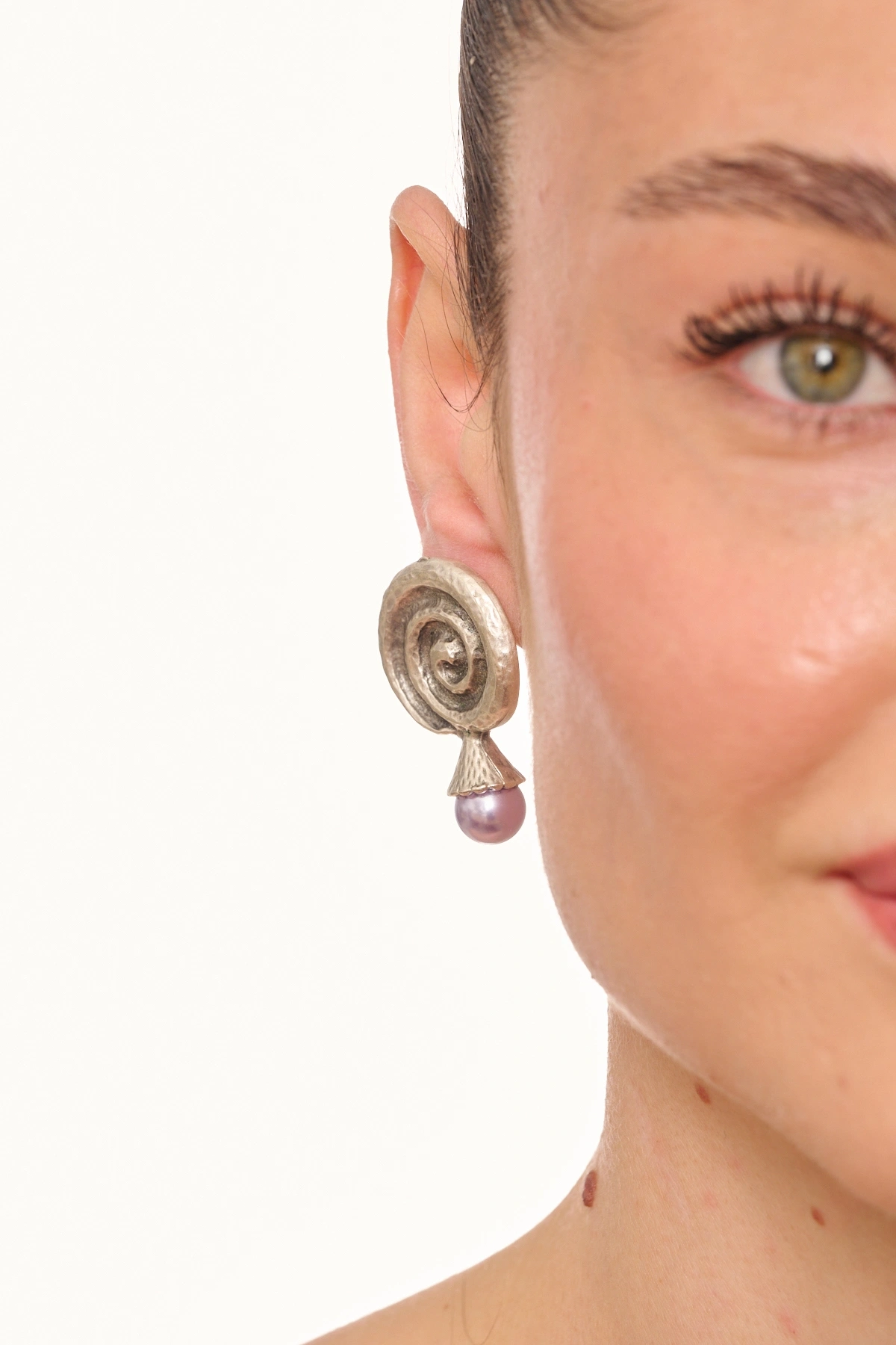 Kiraz Lilac Pearl Stoned Silver Plated Earring