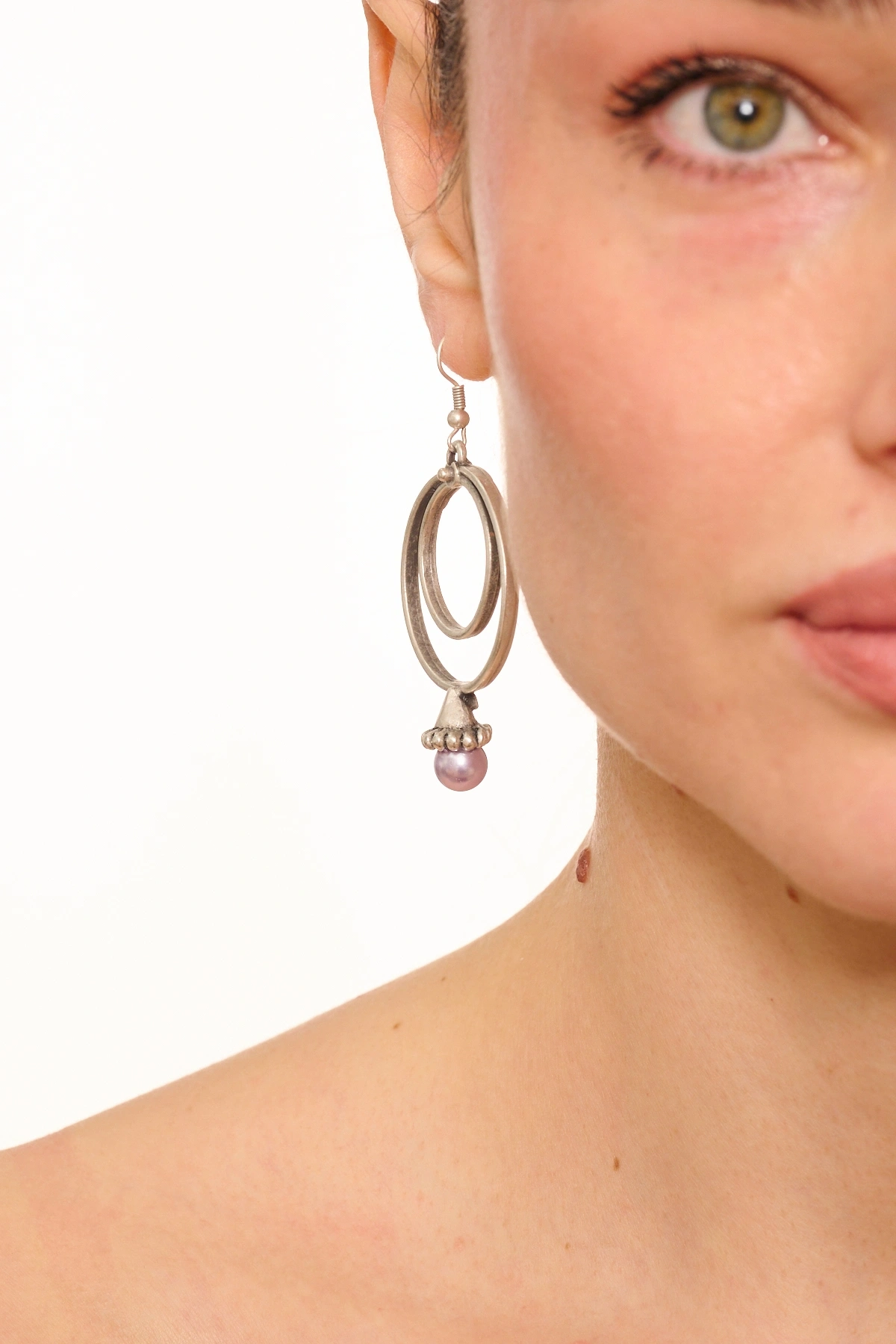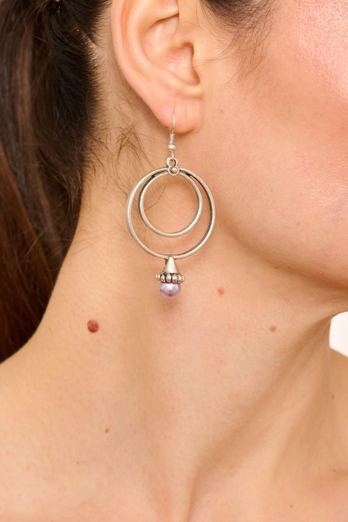 Kiraz Lilac Pearl Stoned Silver Plated Earring