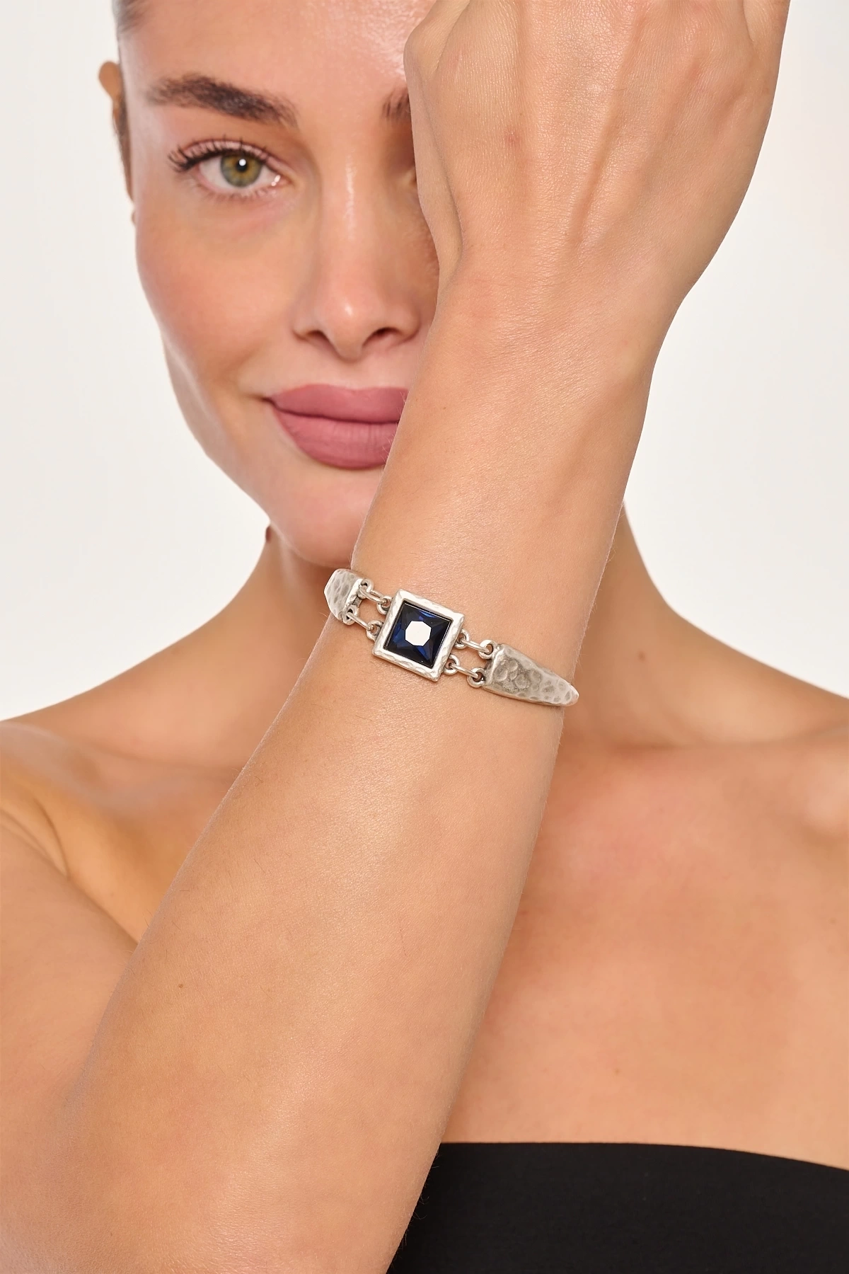 Kiraz Navy Blue Crystal Silver Plated Bracelet