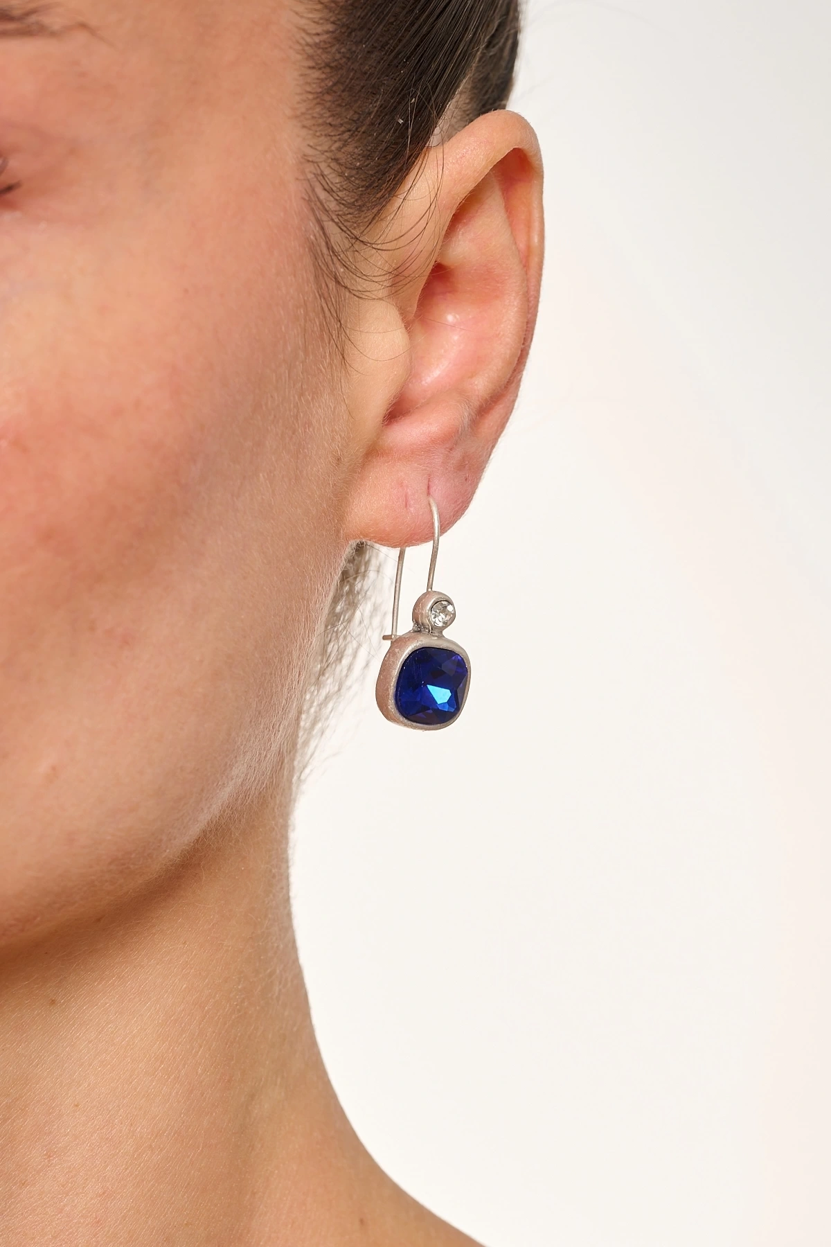 Kiraz Navy Blue Crystal Stoned Silver Plated Earring