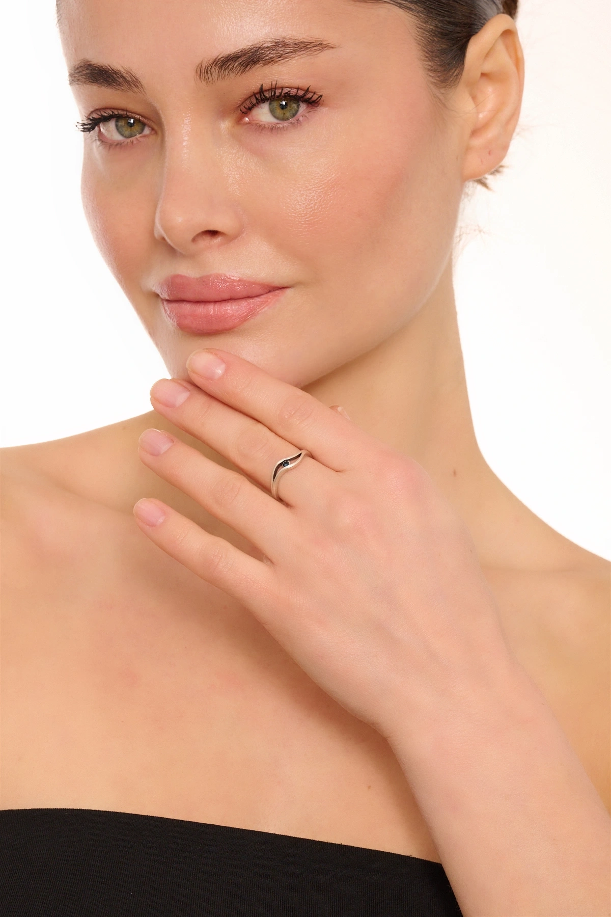 Kiraz Black Crystal Stoned Silver Plated Ring